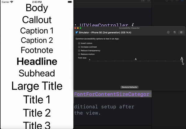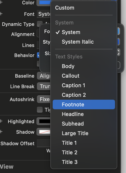 뭐 대충 이렇게 size와 weight를 지정해줄텐데, 이렇게 하면 Dynamic Type을 지원 할 수 없다.