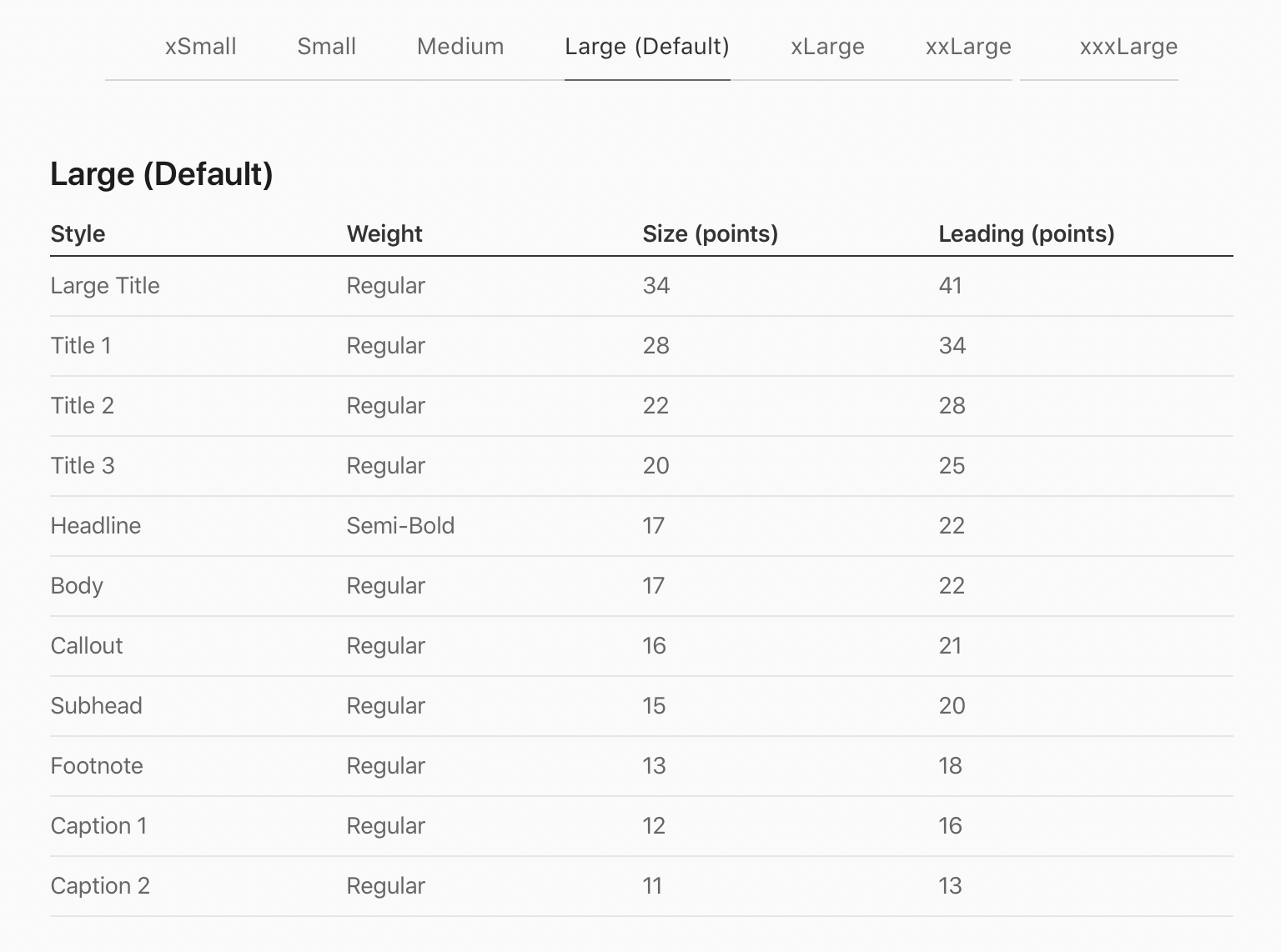 종류는 UIContentSizeCategory에서 확인 가능.