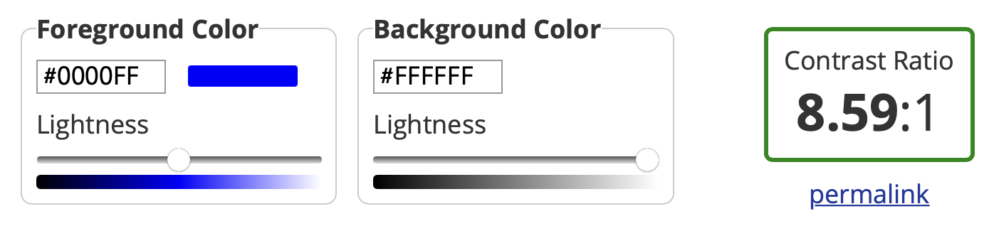 UI에서 인접한 color의 대비가 허용 가능한 최소 수준을 충족하는지 확인하려면 WCAG(웹 콘텐츠 접근성 지침) color 대비 공식을 기반으로 하는 온라인 color 계산기를 사용할 것.