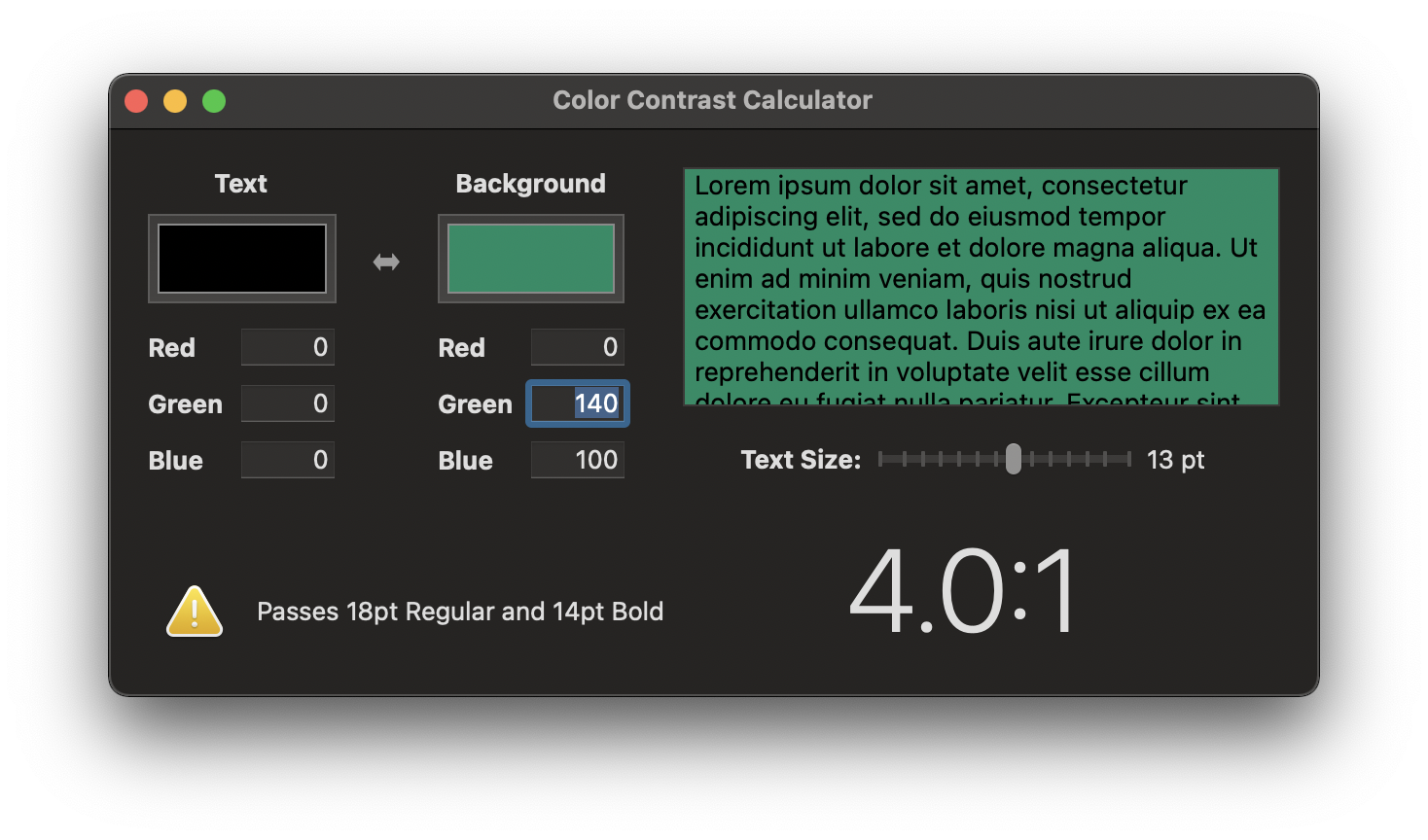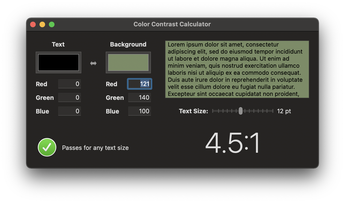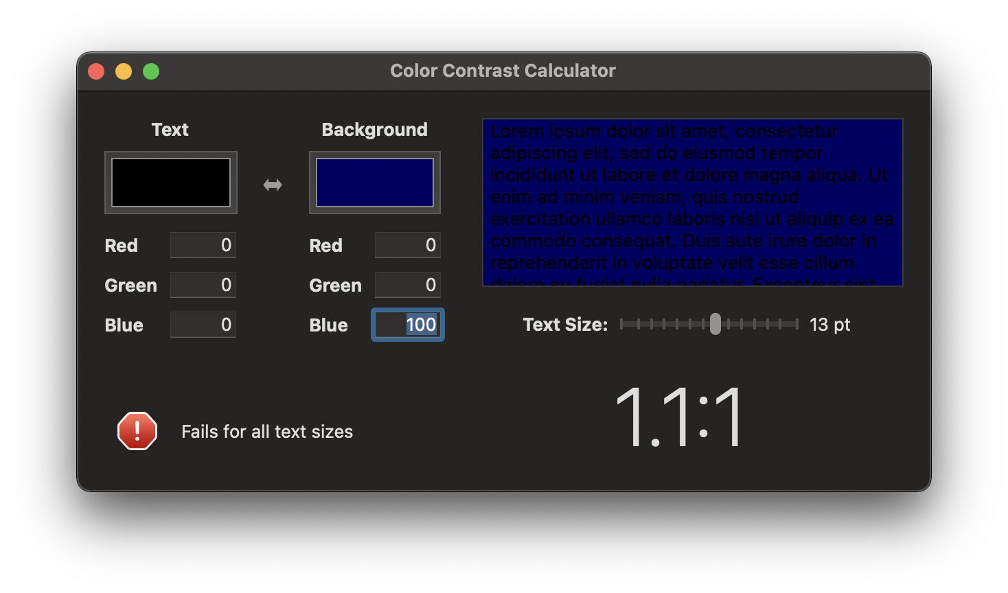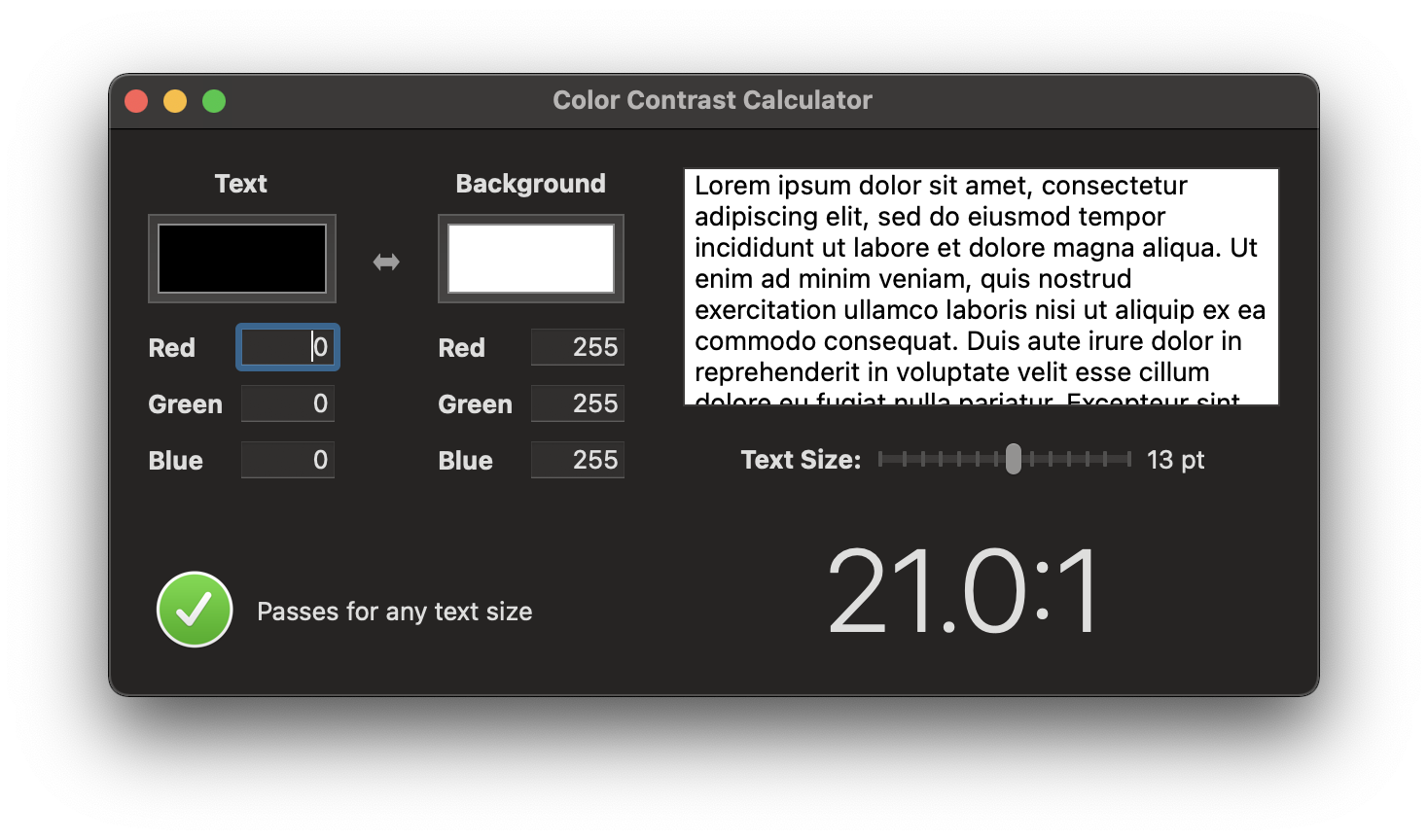 참고로 Xcode에도 Color Contrast Calculator가 있음.