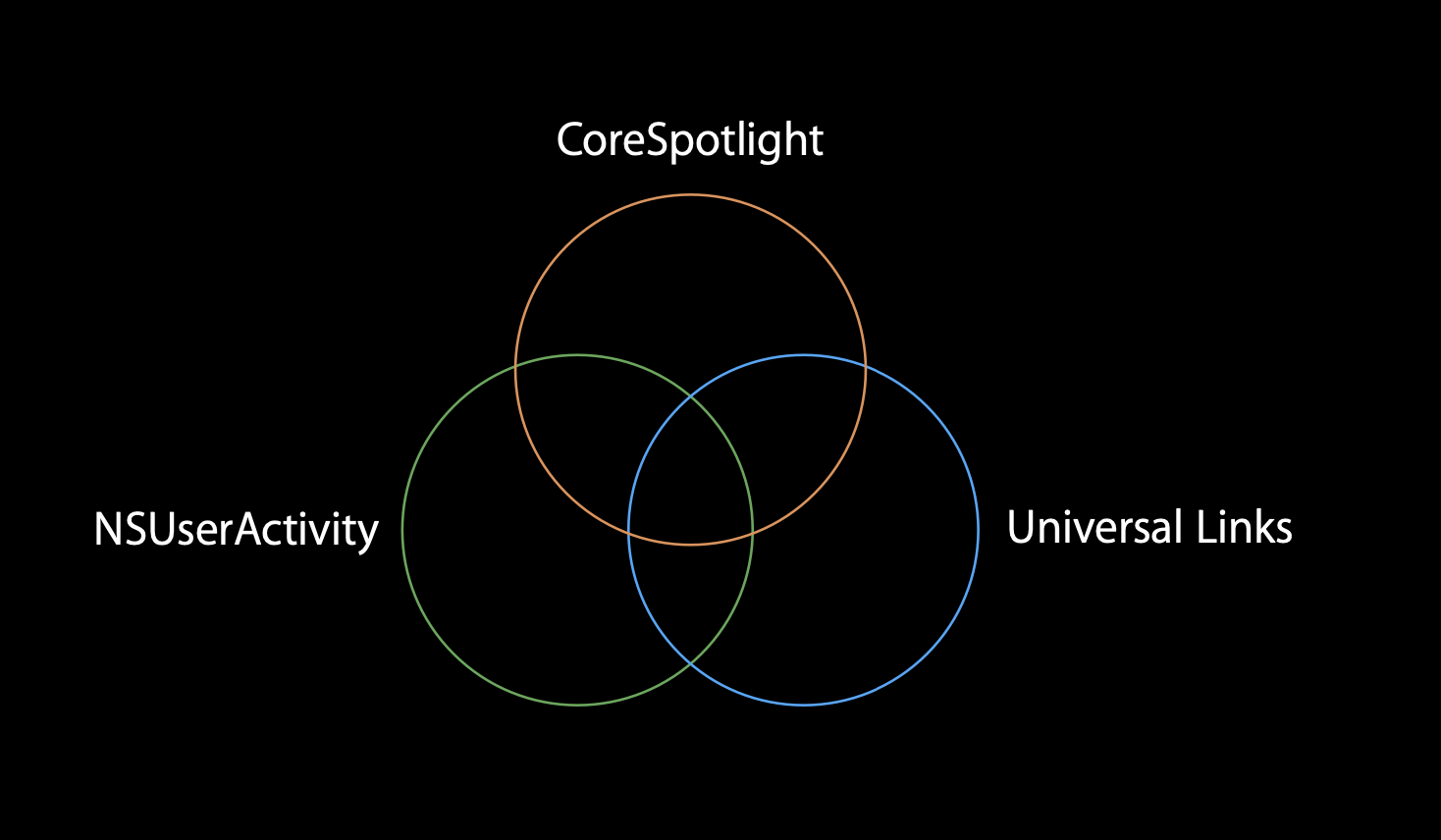 CoreSpotlight / NSUserActivity / Universal Links가 있습니다.