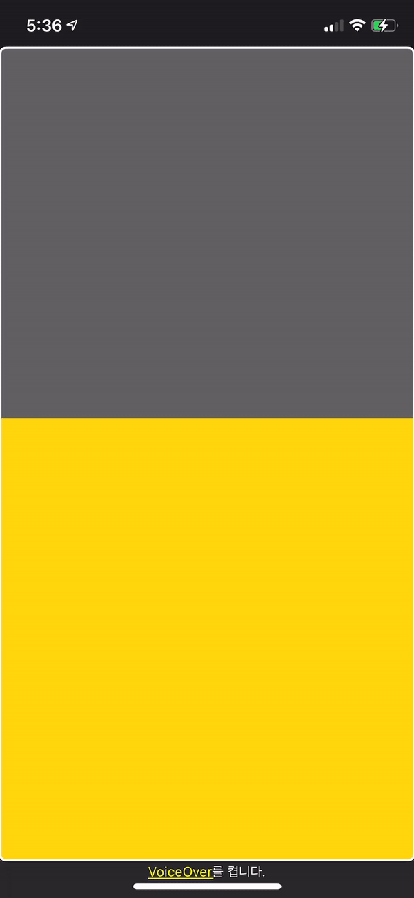 3. 사실상 iOS는(?..VoiceOver는?) dimmedView가 아니라 노란색 Bottom Sheet View를 Tap하게 됨.