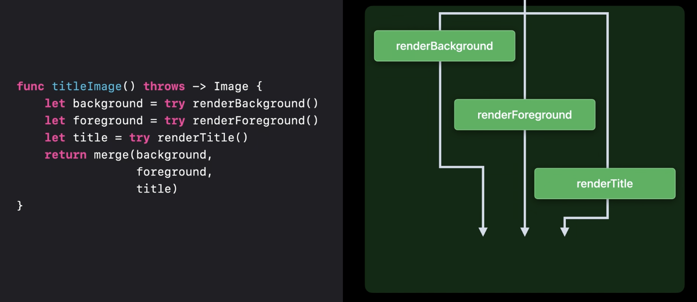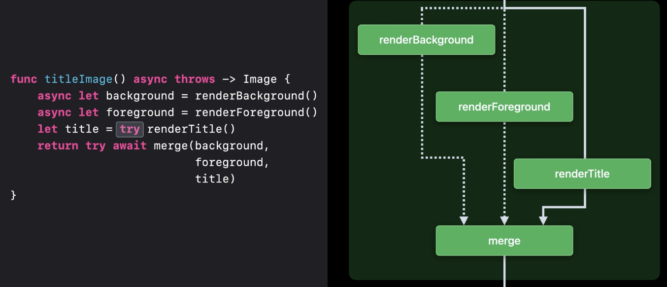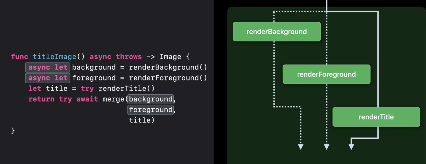 async let을 사용하면 작업을 병렬로 실행할 수 있음 (= background와 foreground렌더링이 병렬로 진행됨)