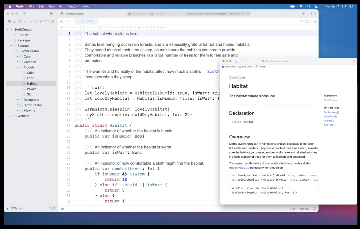 Xcode 13에 통합된 문서 컴파일러인 DocC 출시.