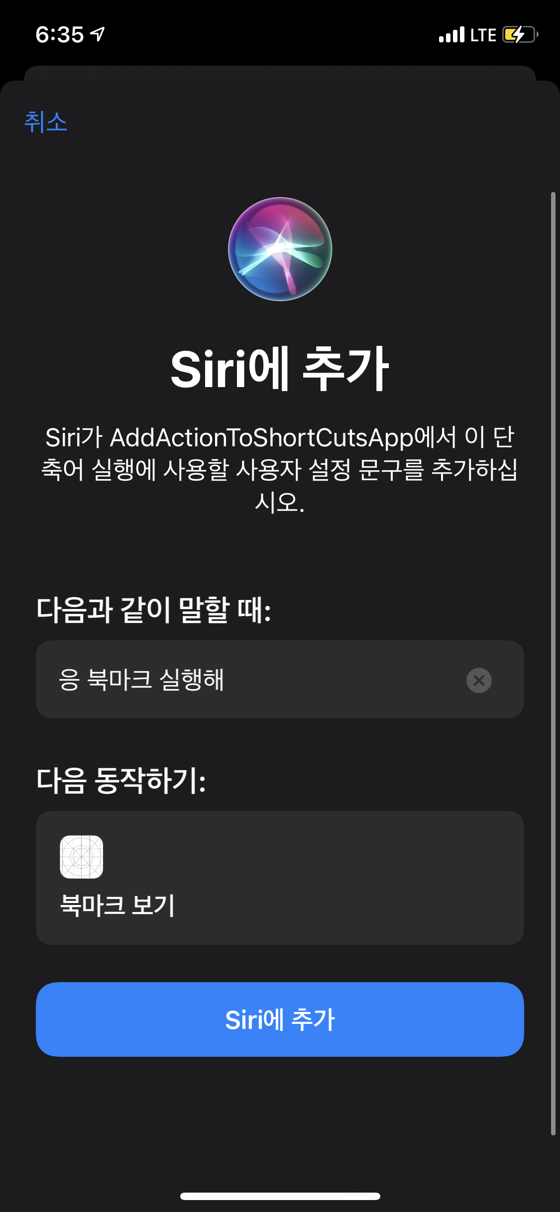 activity.suggestedInvocationPhrase = "응 북마크 실행해" ✅