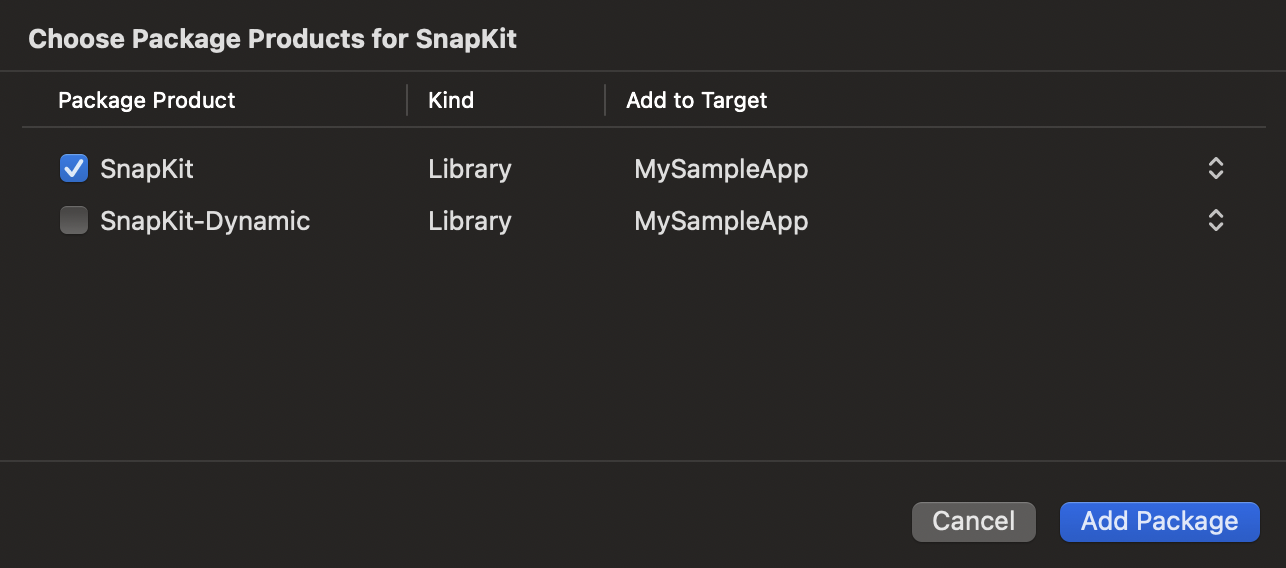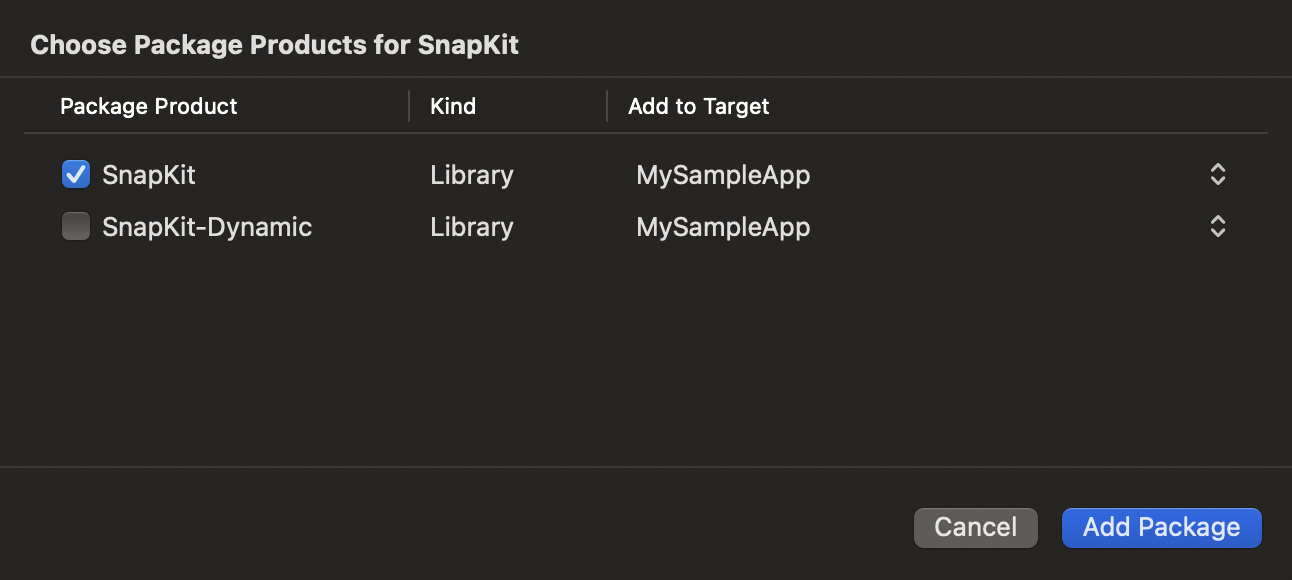 여기서 SnapKit을 제거하고, + 버튼을 눌러