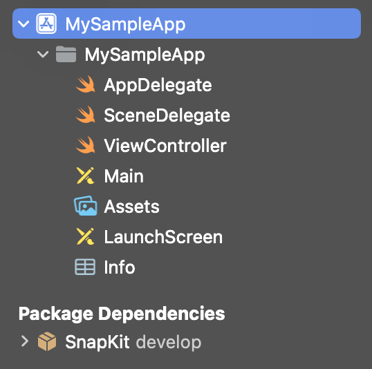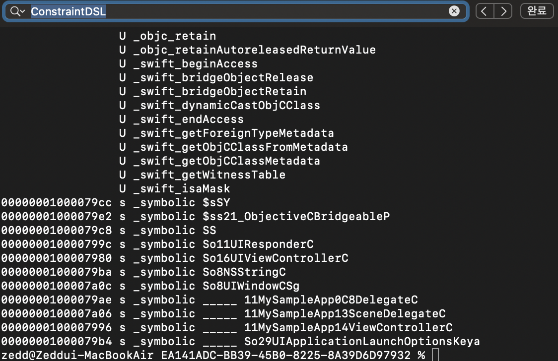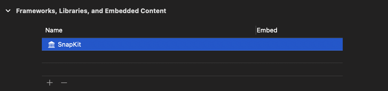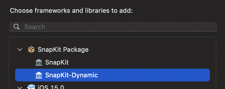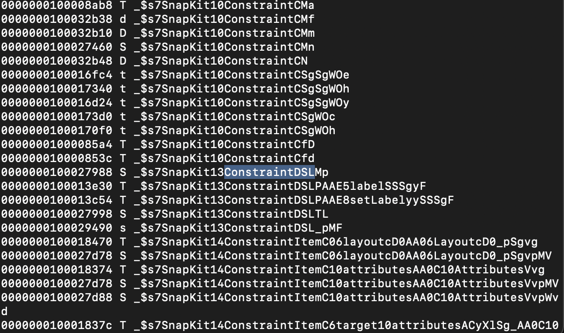 SnapKit안에 있는 코드들이 executable file에 복사된 것을 알 수 있다.