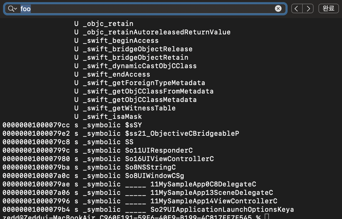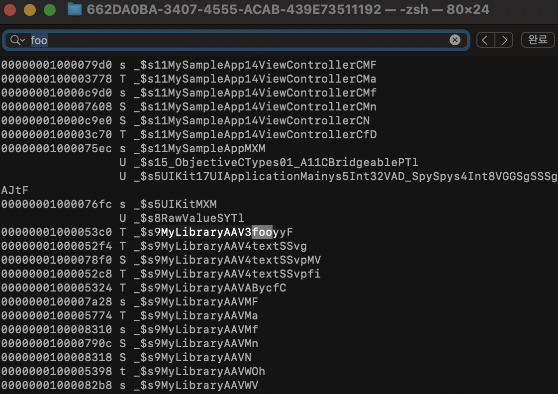 빌드 후 executable file을 nm으로 살펴보면