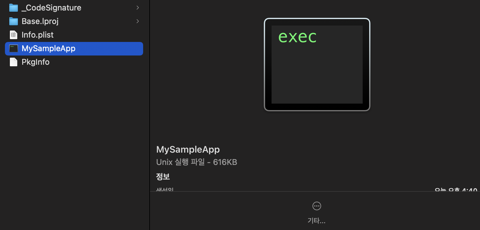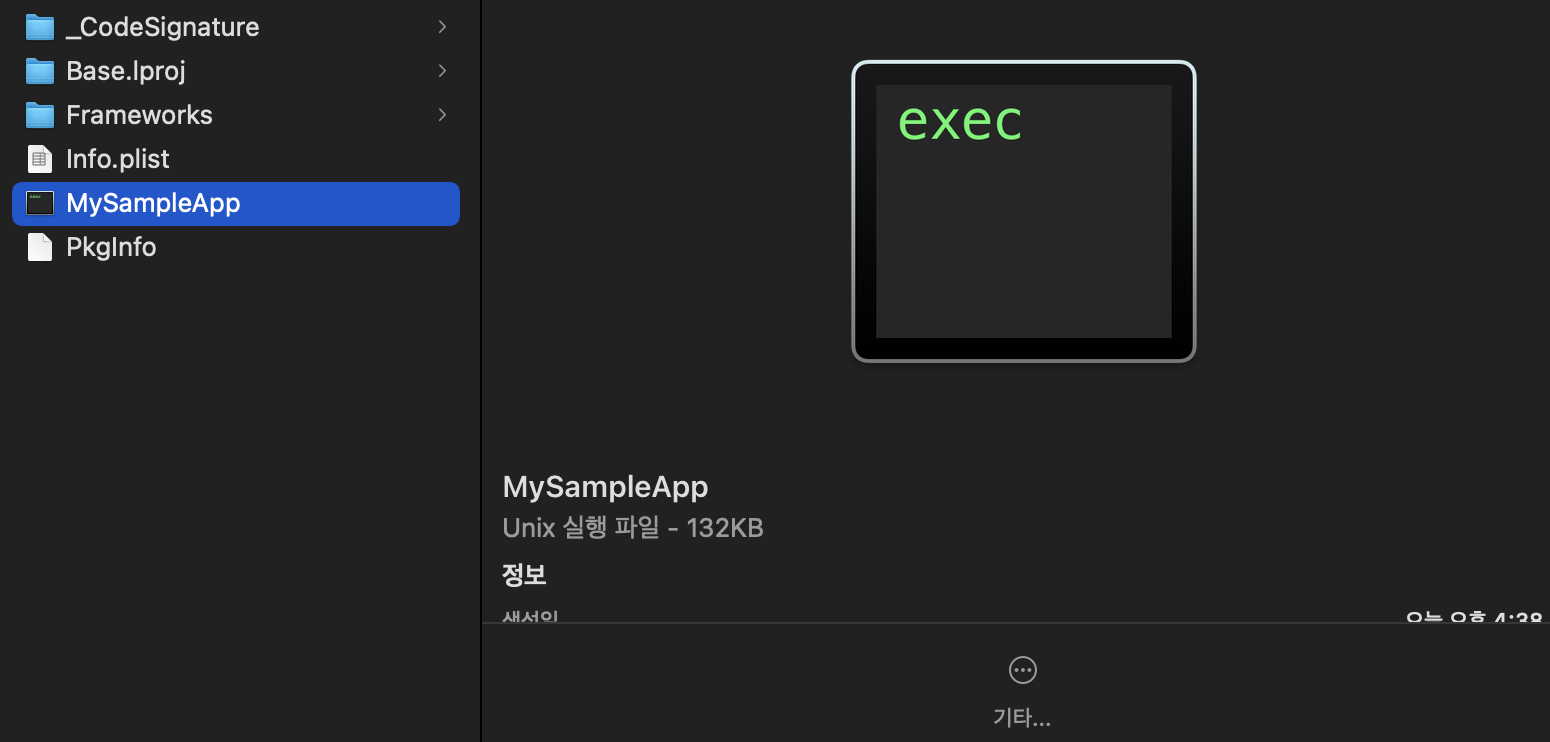 그리고 빌드 후 똑같이 확인해보면, 아까 executable file안에 있던 코드들이 다 빠져있다.