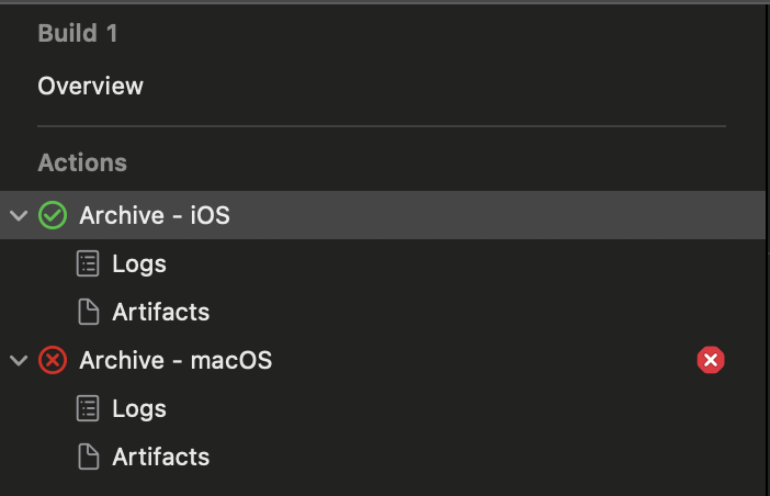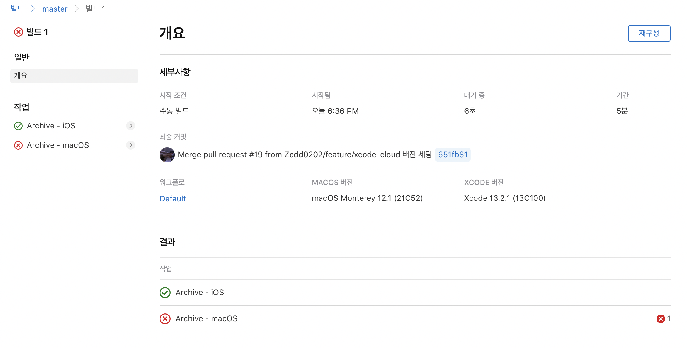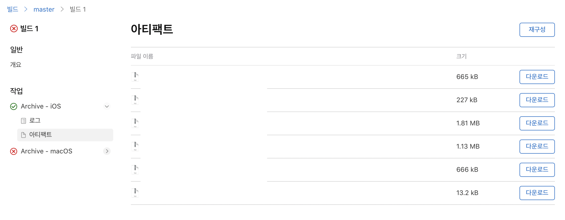 macOS는 아예 빌드가 안되는 상태로 workflow를 돌렸는데...당연히 실패한 것을 볼 수 있습니다.
