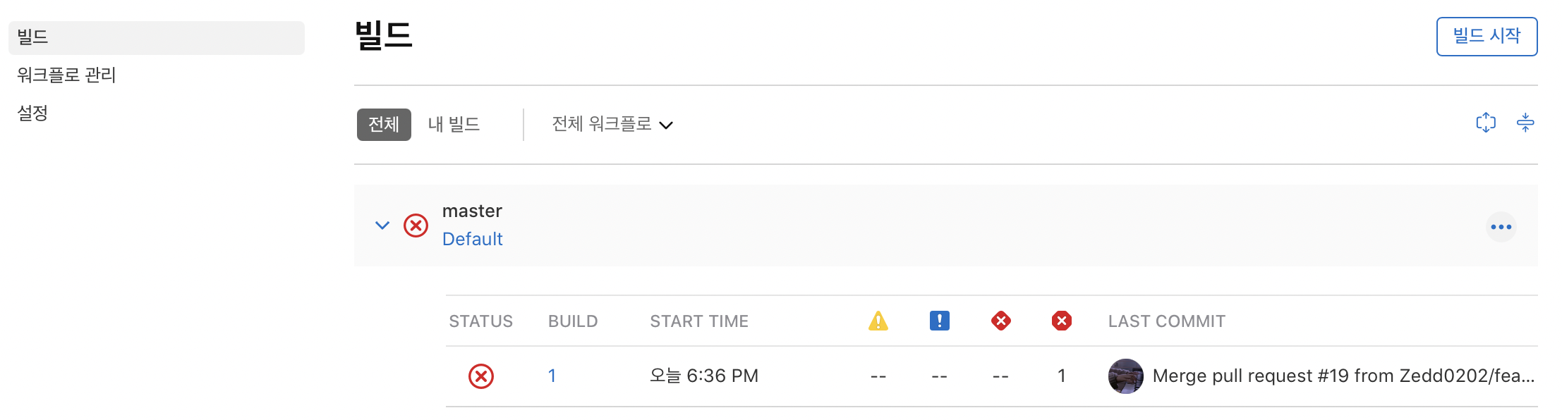 내가 돌린 빌드들도 볼 수 있고, 심지어 빌드를 시작할 수도 있습니다.