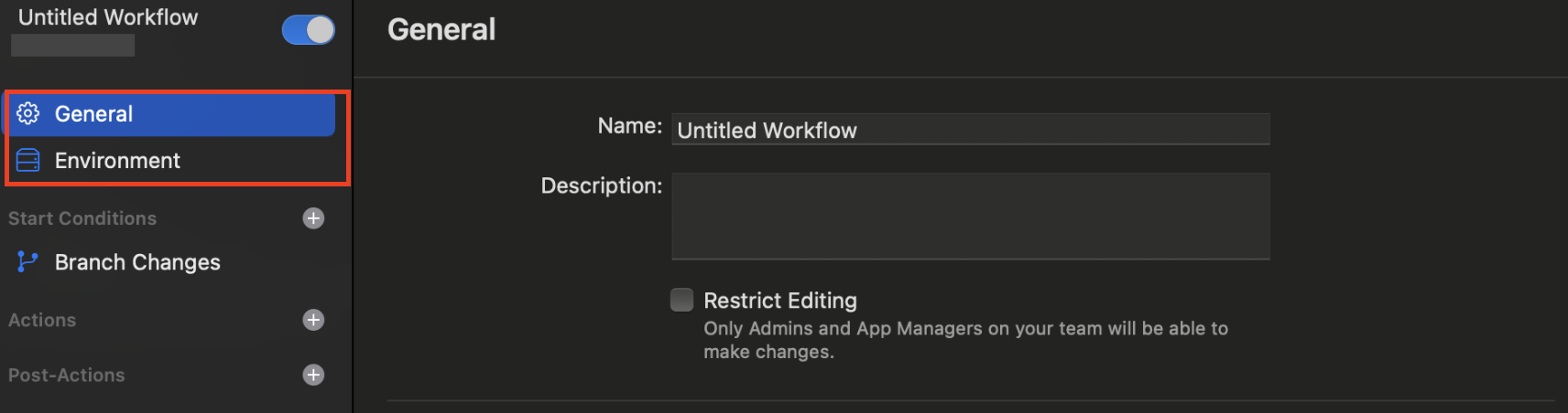 Restrict Editing - 내 팀의 admin이나 App Manager만 이 workflow를 수정할 수 있게 할건지.