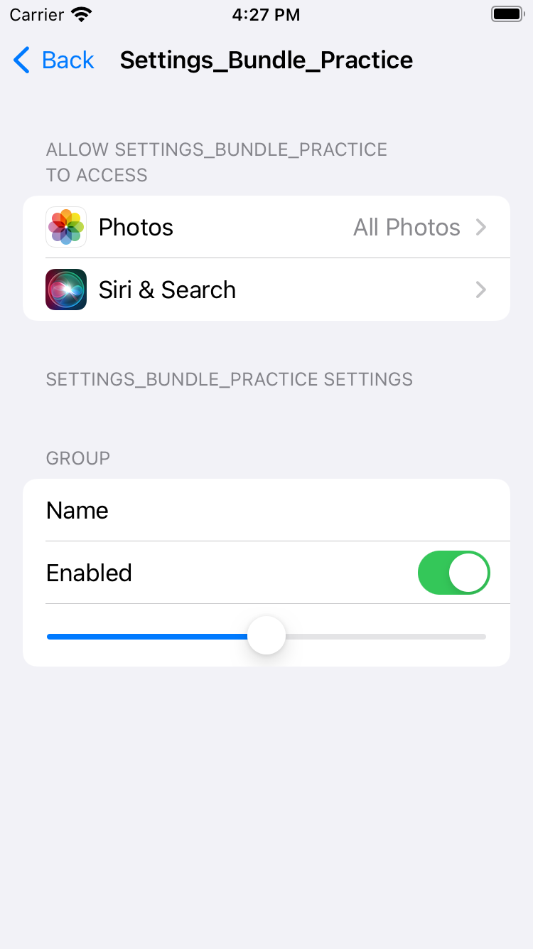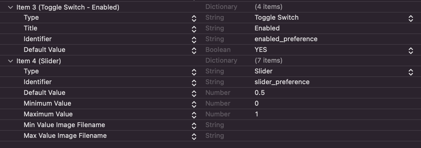 Settings Bundle을 구성하는 컨텐츠들은 아래와 같아요.
