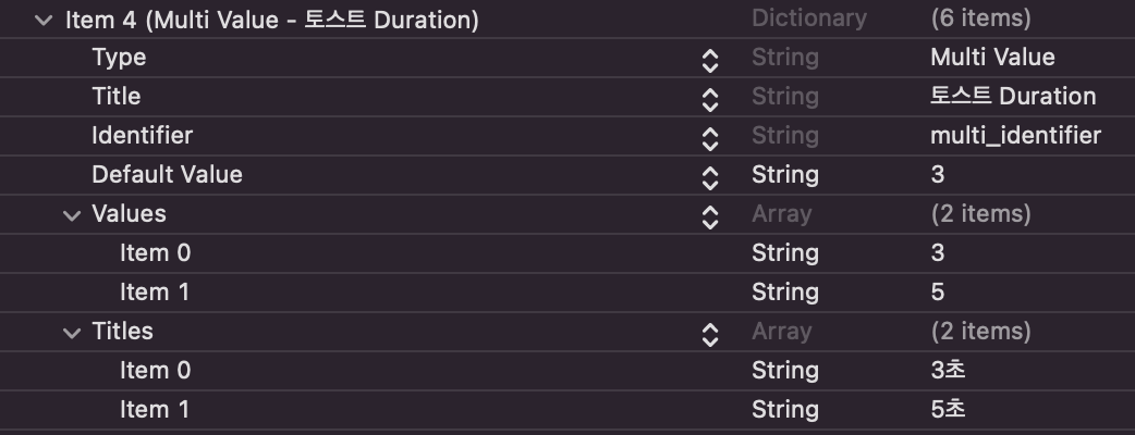 plist에서 +버튼을 누르면 type을 선택하는게 뜨는데, 거기서 Title을 누르면