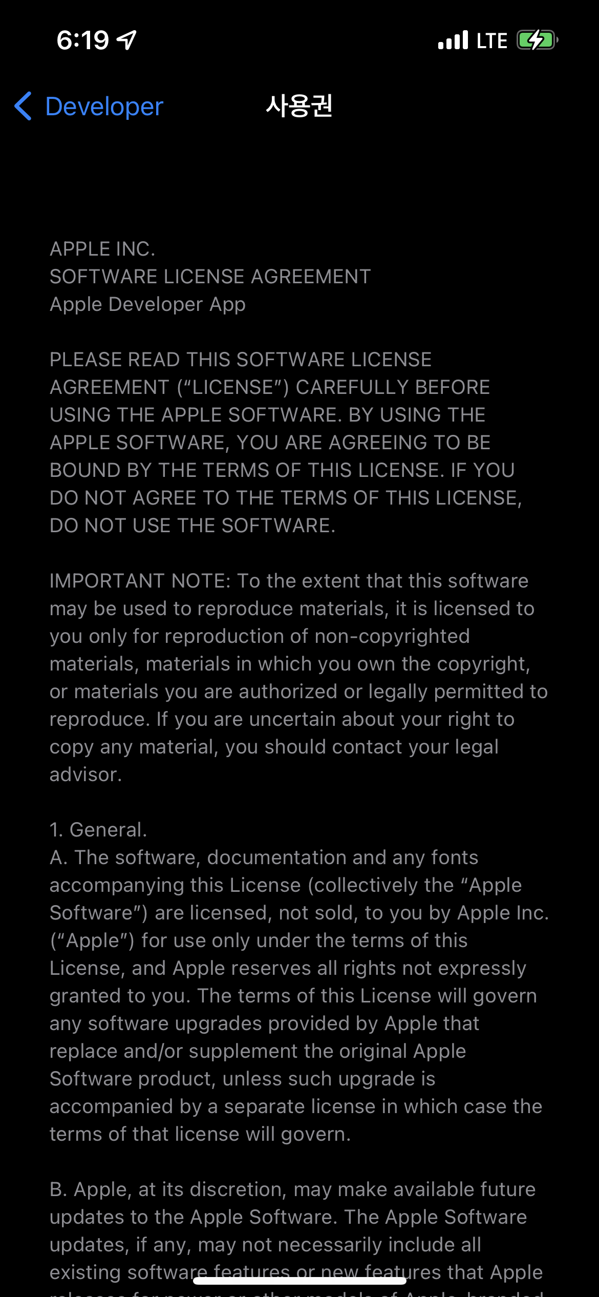 Apple Developer 앱 말고도 기본 앱 설정에 라이선스를 넣어둔 곳이..찾아보니