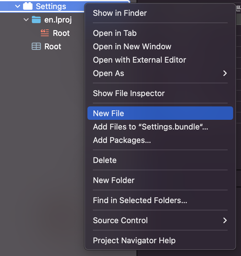 2. Settings Bundle > New File하여 새로운 파일 생성
