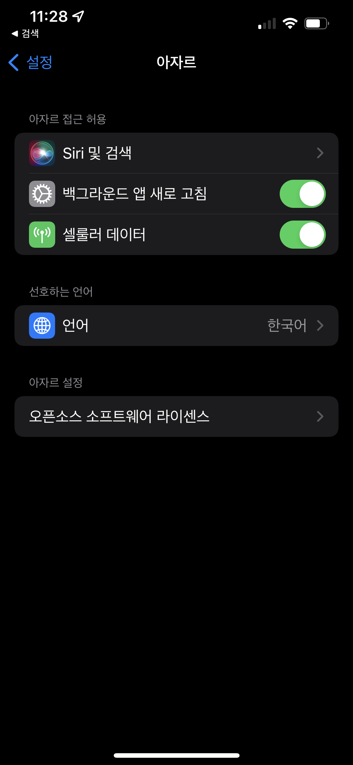 제가 설치한 앱들중에서는 기본 앱 설정에 설정을 둔게 많이 없더라구요.