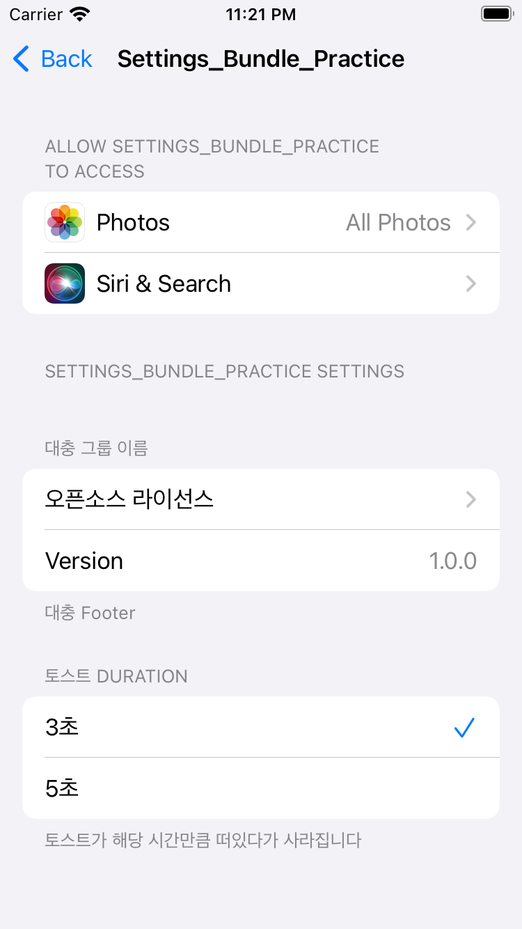 글에서 Settings Bundle의 컨텐츠들 설명했던 부분 기억나시나요? (공식문서 링크)