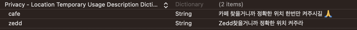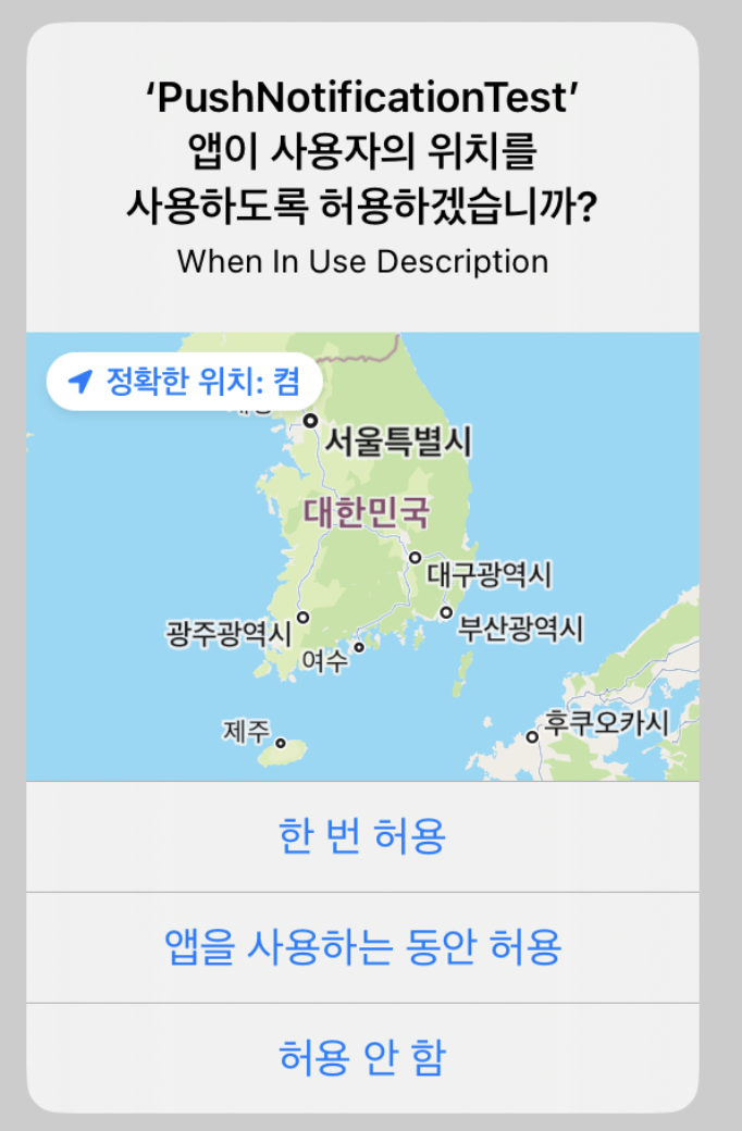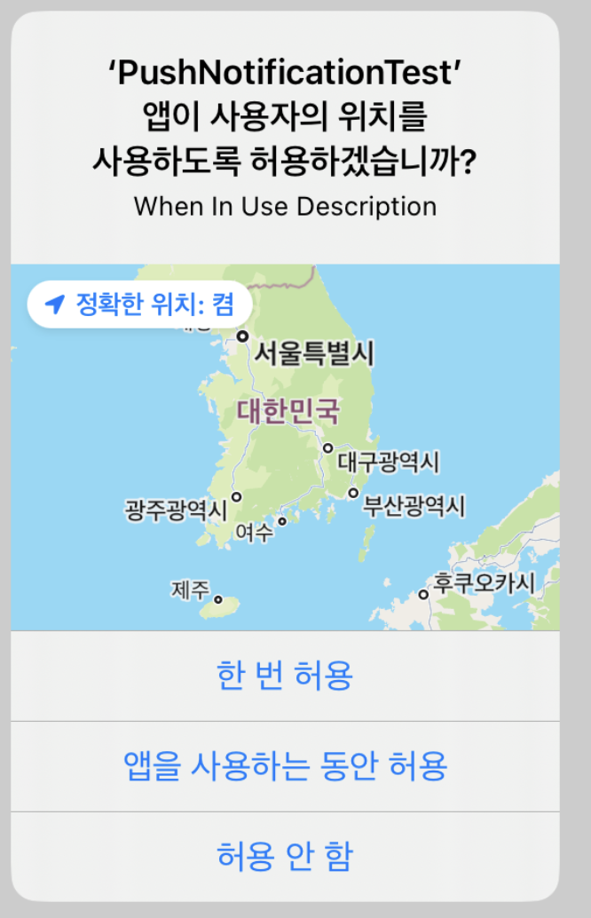 해당 key로 접근하면 그 description이 나오면서 정확한 위치 요청 권한 프롬프트가 뜬다.