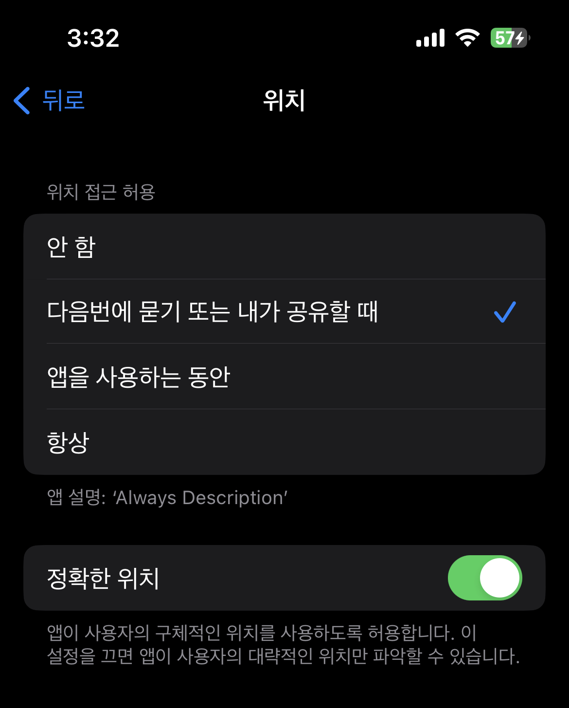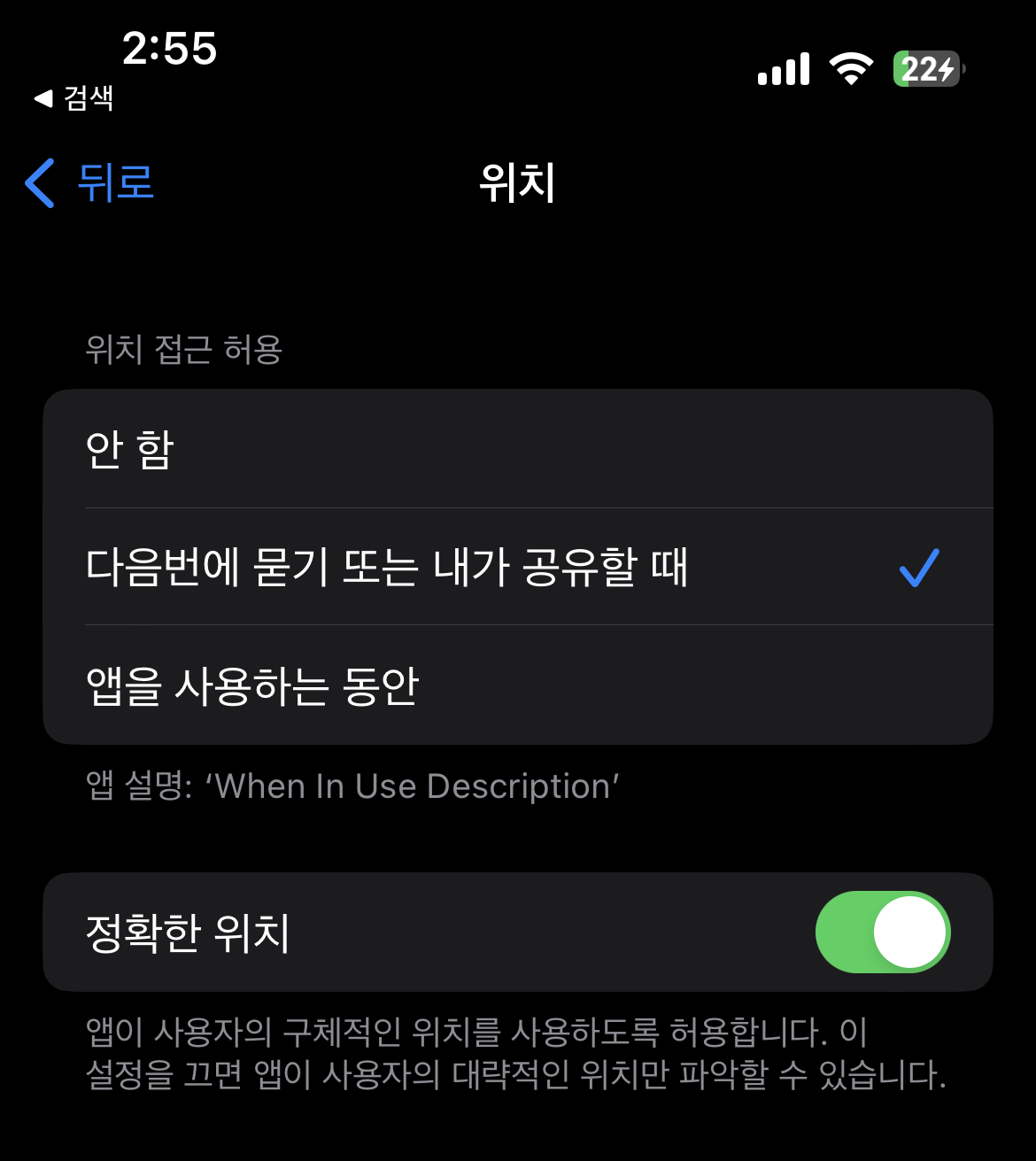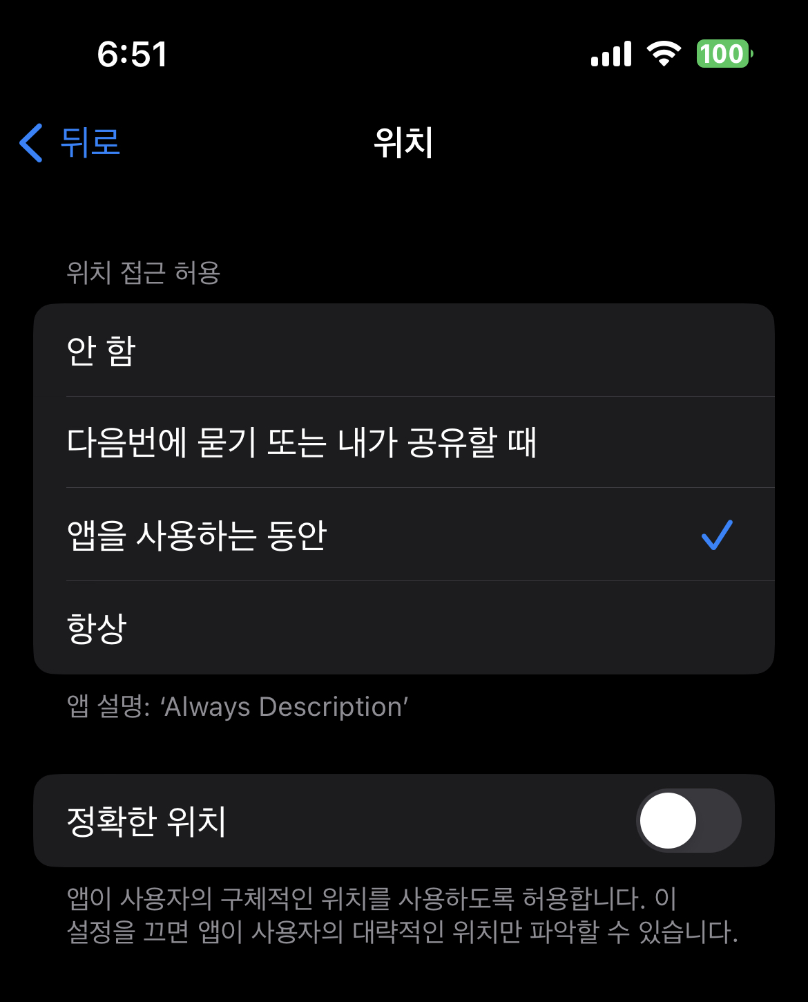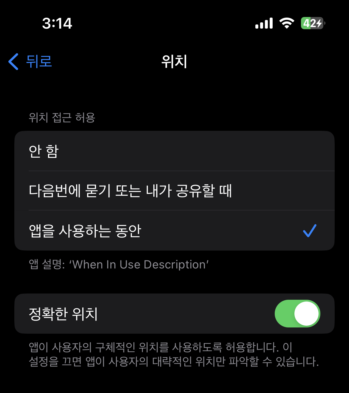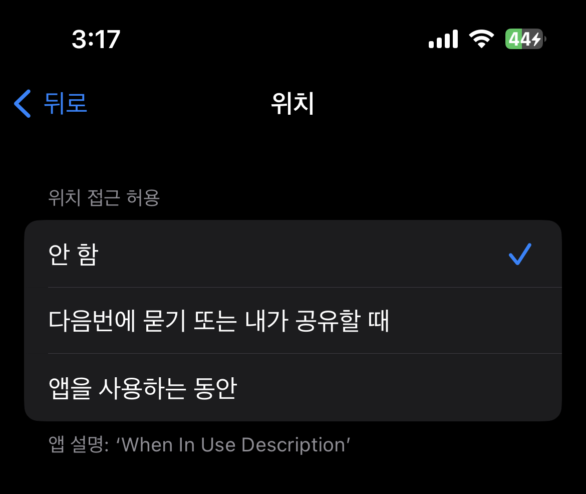 2. Description은 When In Use의 Description이 나옴