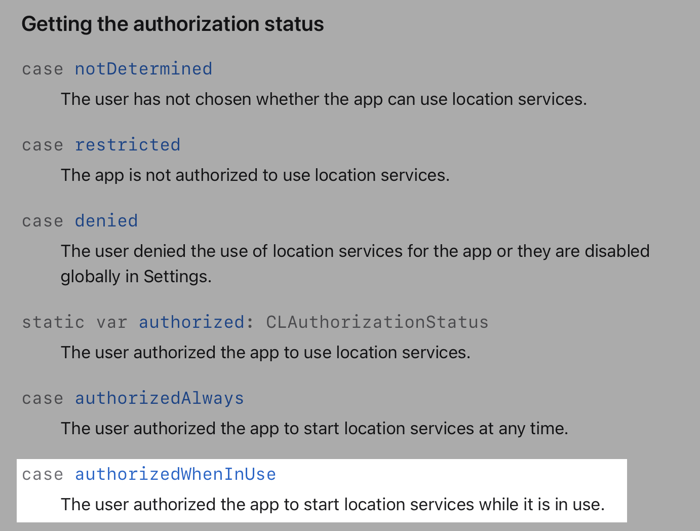 authorizedWhenInUse로 설정됩니다.