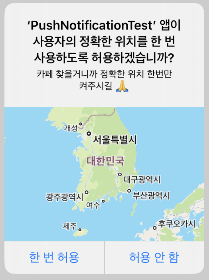 원래 그랬는데.. 애플도 뭔가를 느꼈는지 iOS 13.4 부터 이 항상 허용 프롬프트를 개발자가 띄울 수 있도록 변경했습니다.