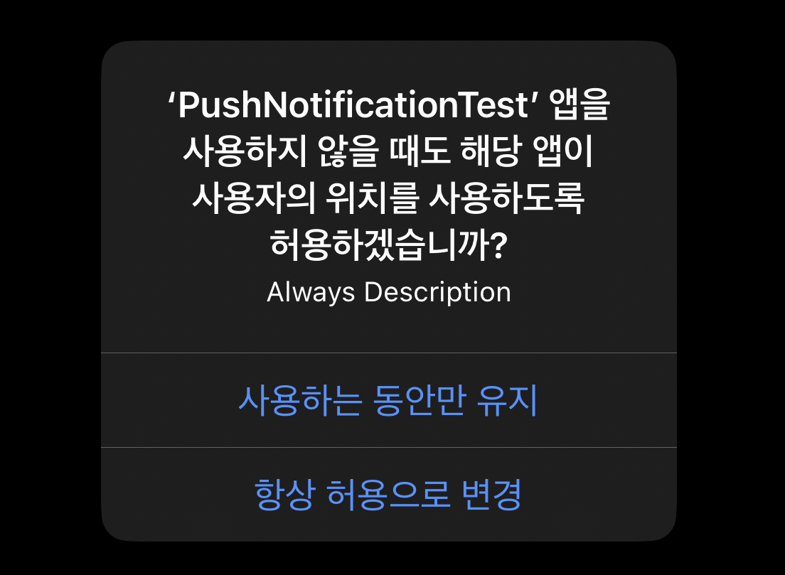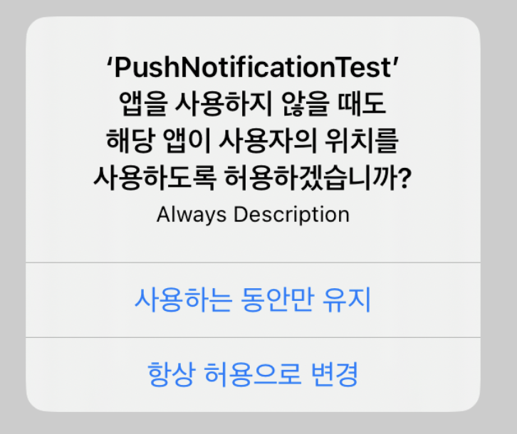 이번엔 Always 권한을 요청해보겠습니다.