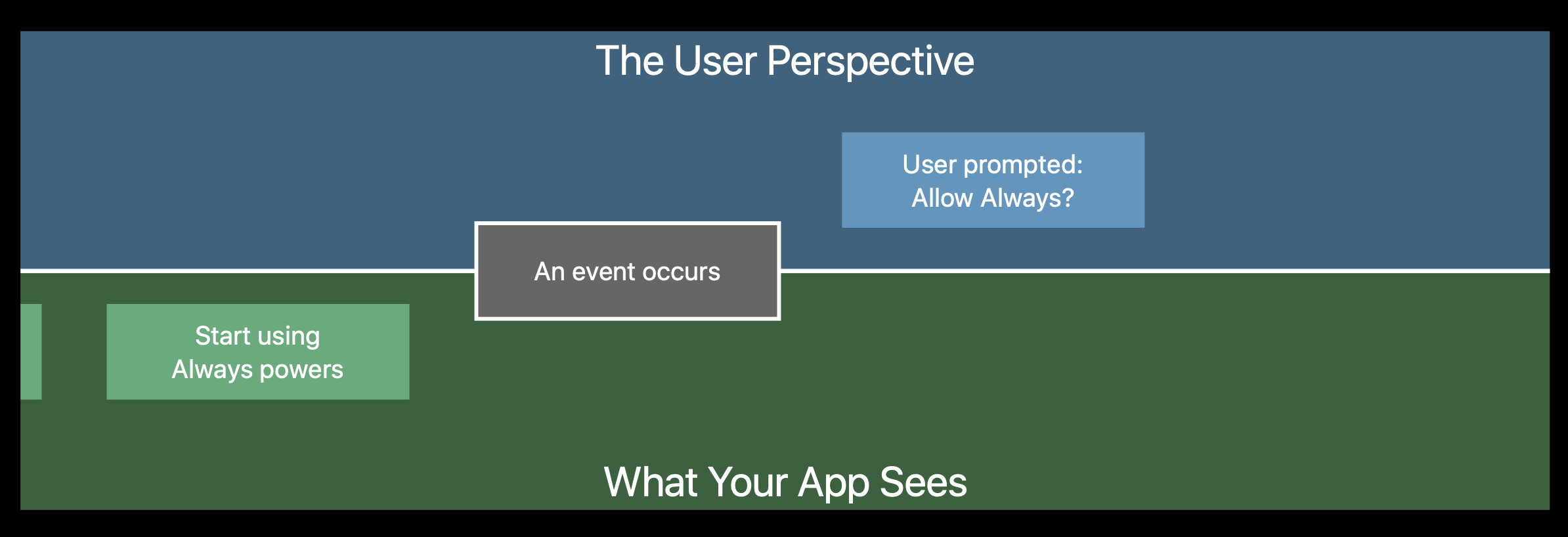 - 사용자가 앱이 실행중이라는 사실을 알지 못하는 경우에도 앱은 모든 위치 서비스를 사용하고 이벤트를 수신할 수 있음