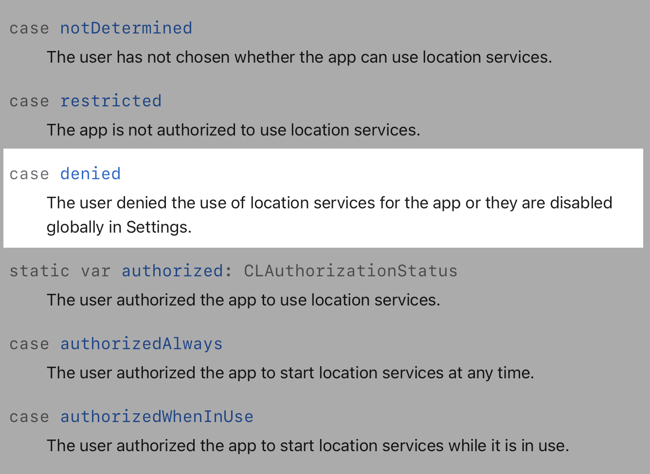 하지만 앱이 더이상 사용되지 않는 즉시 notDetermined 상태로 돌아갑니다.
