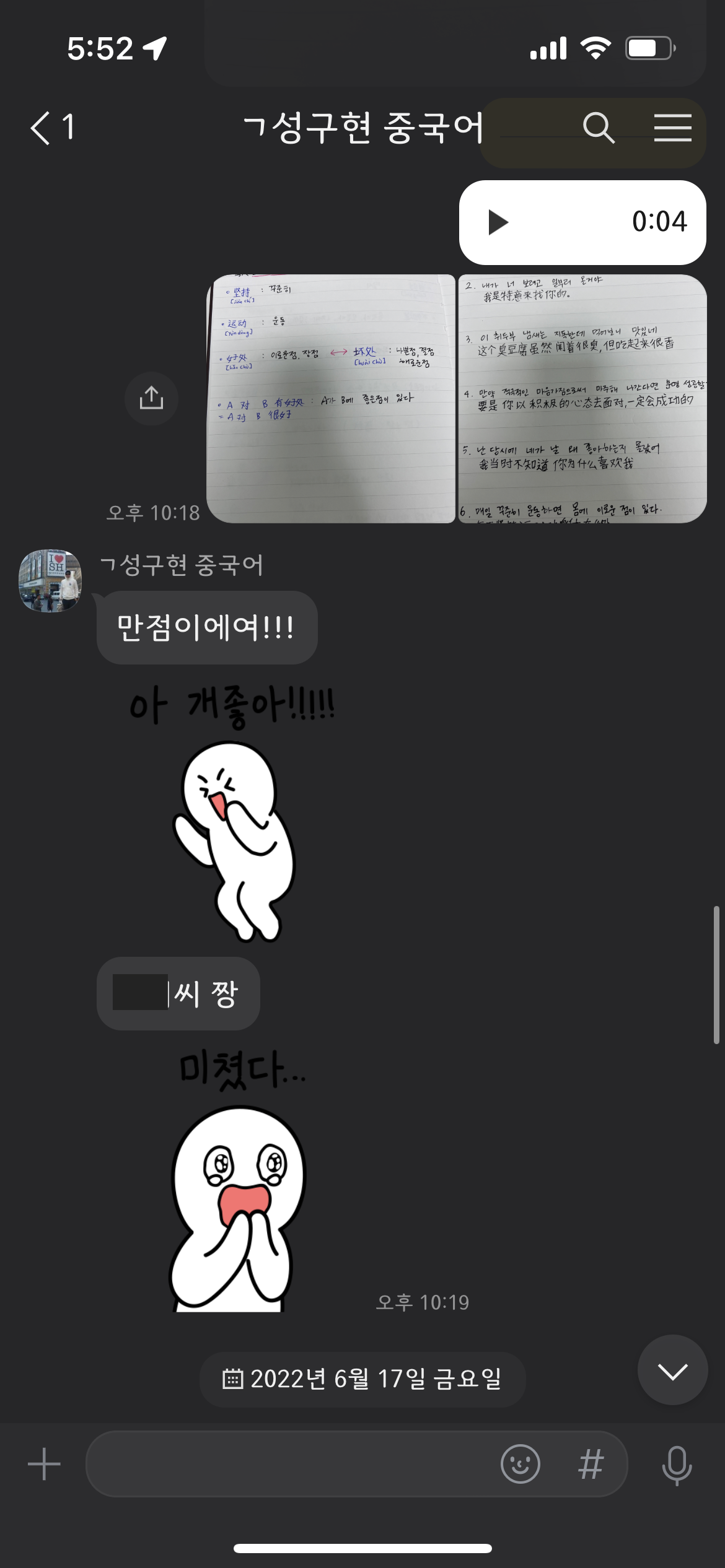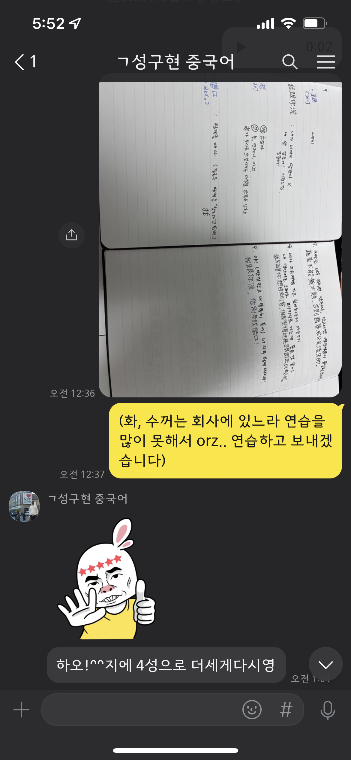 그러면 선생님(진짜중국어 채널 주인..) 녹음해서 피드백을 보내주신다.