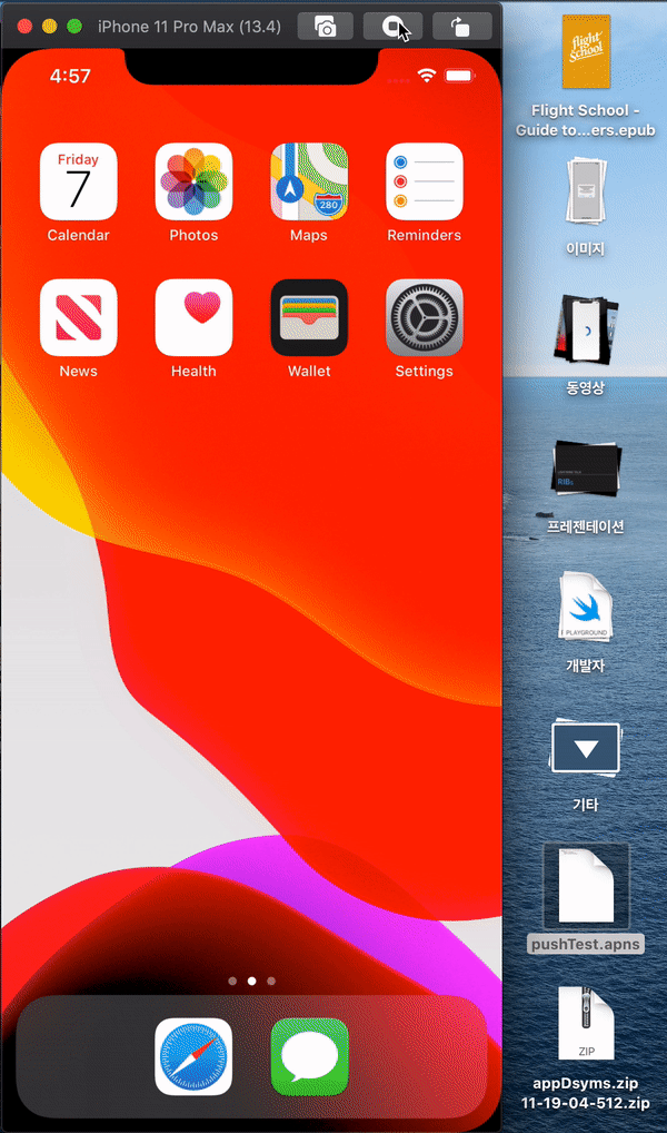 보통 Xcode 11.4 ) Remote Push Notifications in Simulator (feat. APNs file) 에서 본 것 처럼