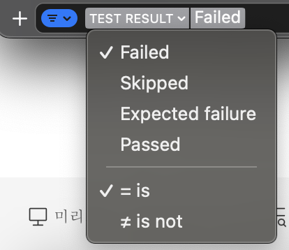 is not failed로 선택하면 failed를 제외한 성공, 스킵, 패스된거만 나오게 될 듯