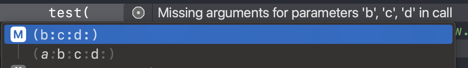 func test(a: Int = 1, b: Int, c: Int, d: Int) {}