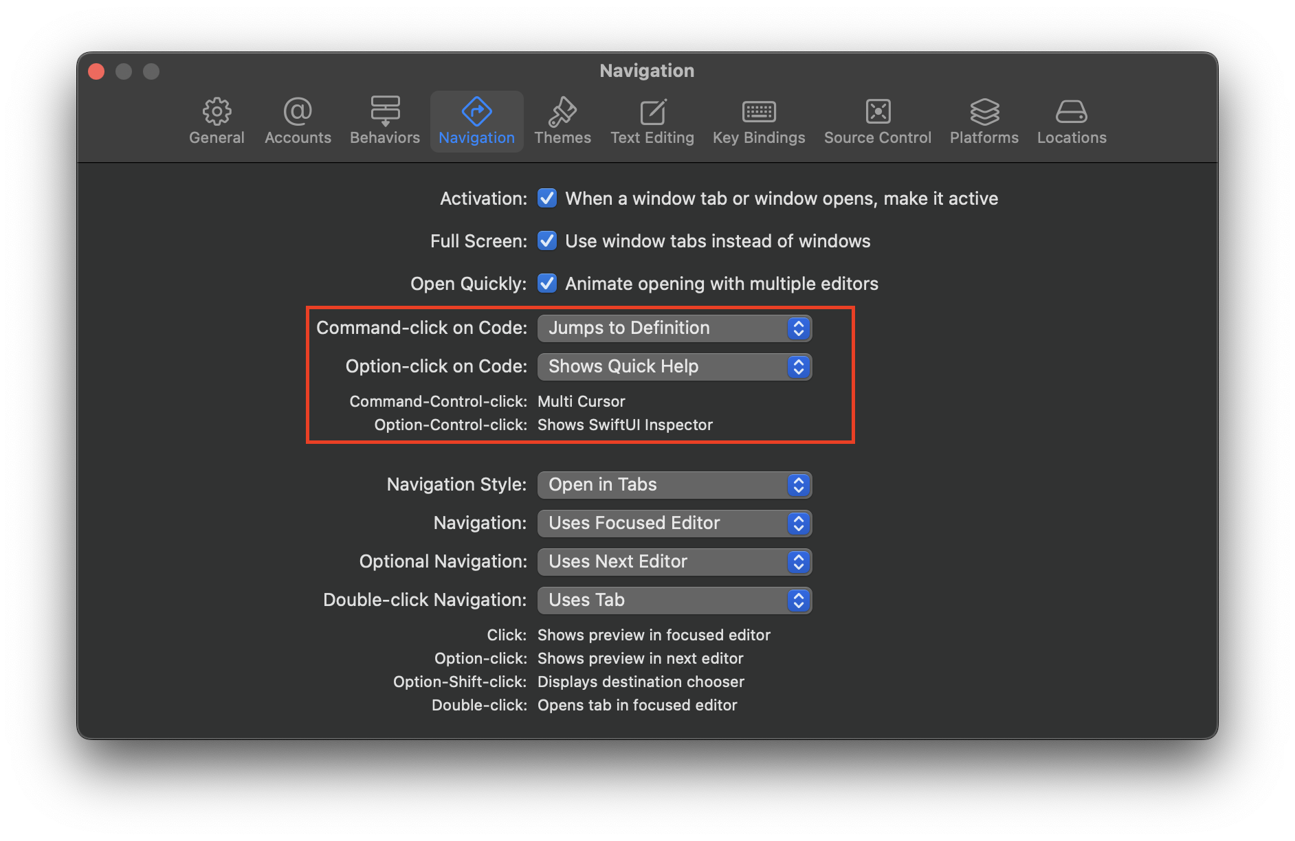 - 이제 에디터에서 Command + 클릭하면 기본적으로 Definition으로 이동이 수행.