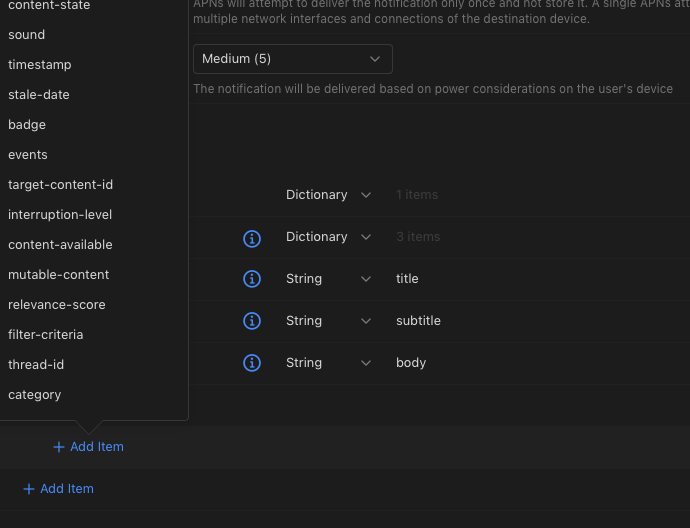 apns-expiration ➡️ 푸시가 유효한 날짜라고 보면됨. Attempt delivery once로 지정해주자