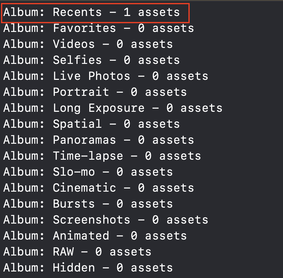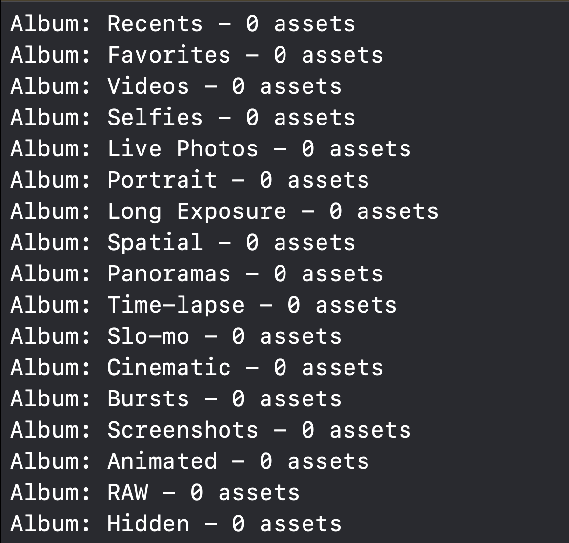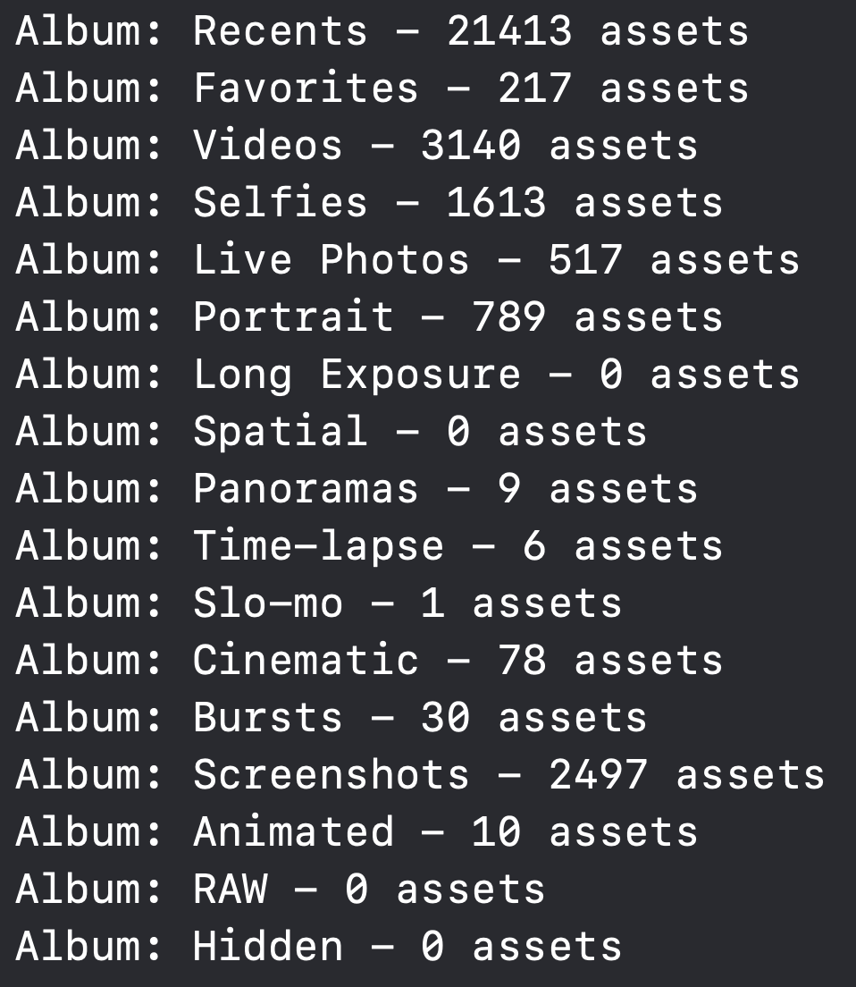 let albums = PHAssetCollection.fetchAssetCollections(with: .smartAlbum, subtype: .any, options: nil)