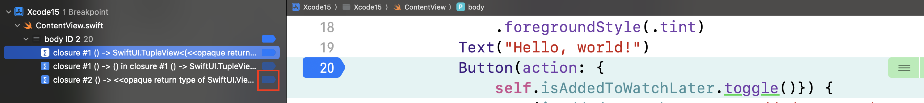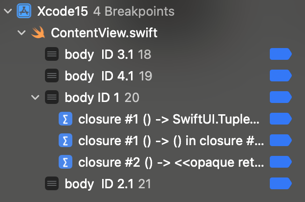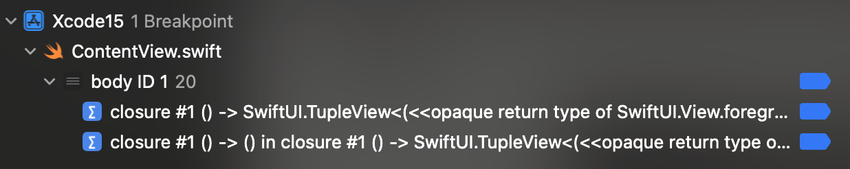 Xcode는 3개의 breakpoint를 생성한다.