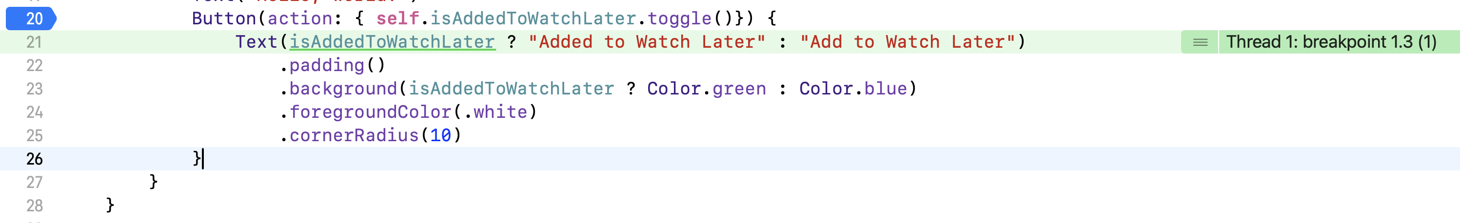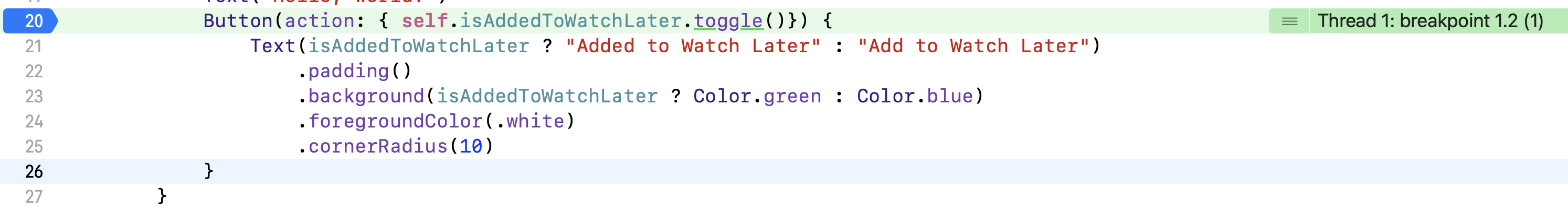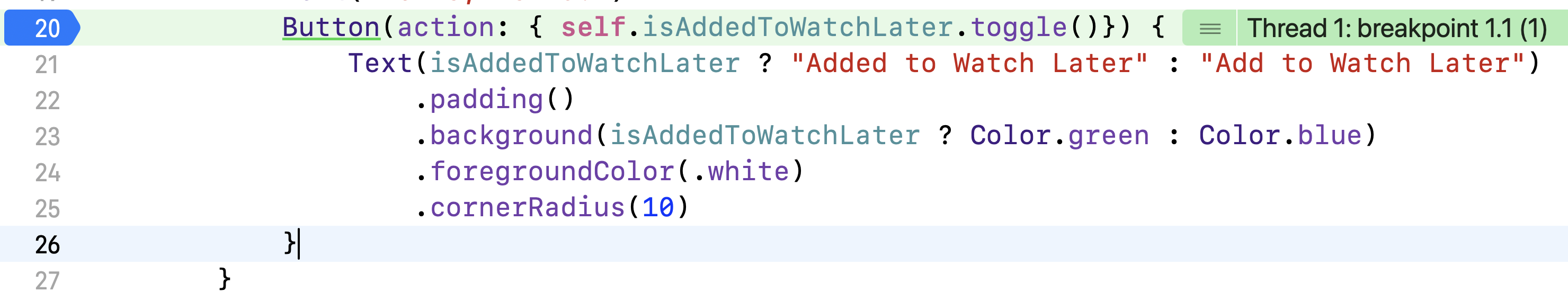 Button(action: { self.isAddedToWatchLater.toggle()}) {