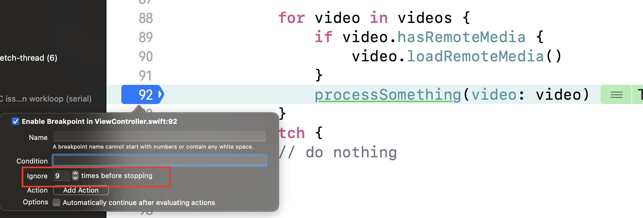 3. Breakpoint ignore count