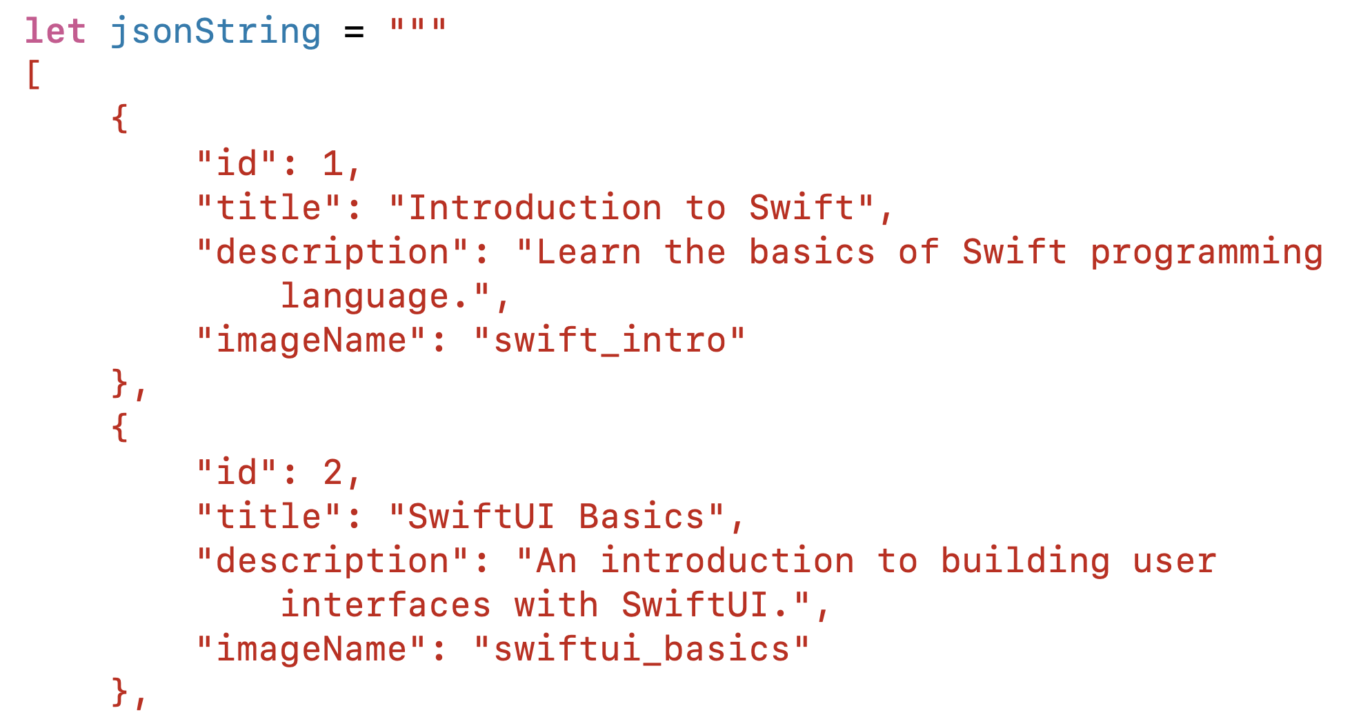 let videos = try decoder.decode([Video].self, from: jsonData)
