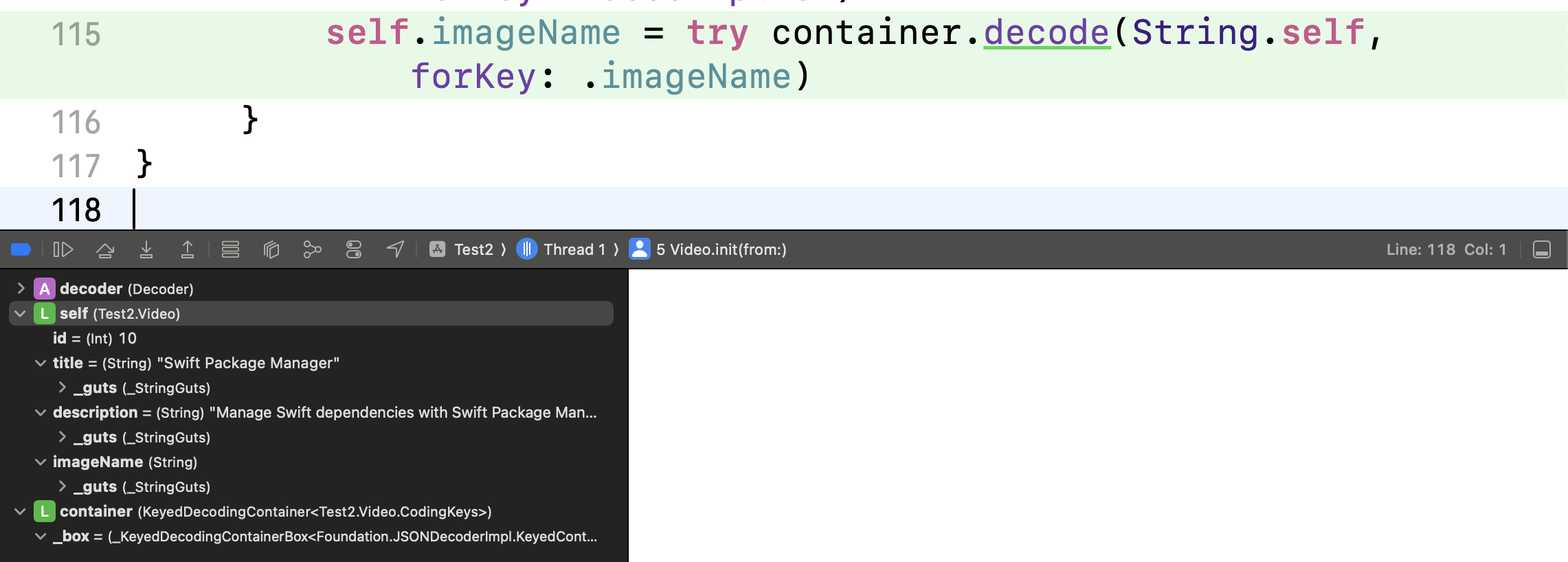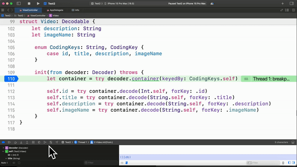나도 이렇게 decode쪽 로직에 breakpoint를 걸었던 적이 있었고.. 당연하게도 매번 breakpoint가 실행되니 그냥 print로 원인을 찾았던 적이 있는데 이럴 때 Swift Error Breakpoint가 유용했을 것 같다.