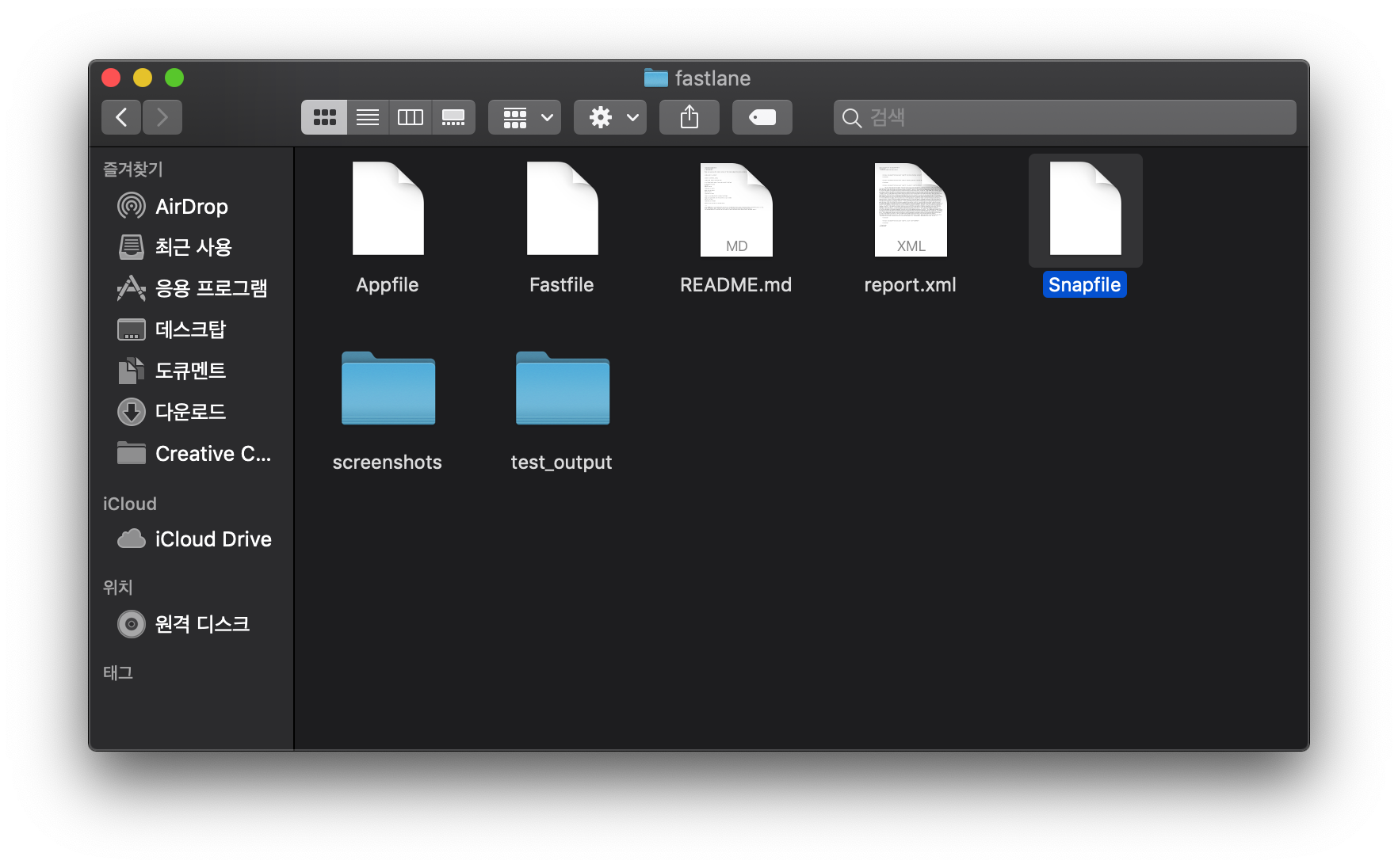 여기에 스크린샷 ㅈㅓ장해줘!! 라고 지정했어서..생겼네요. 들어가봅시다. 지정안해주면 fastlane디렉토리 안에 생기는듯