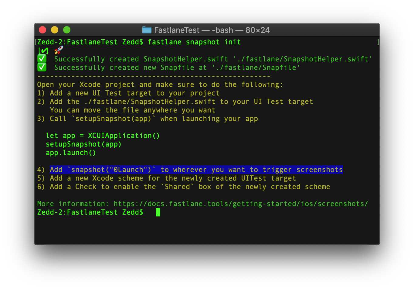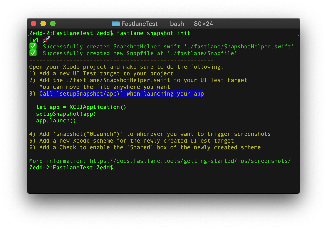 프로젝트 폴더에 가서 fastlane snapshot init을 하래요?