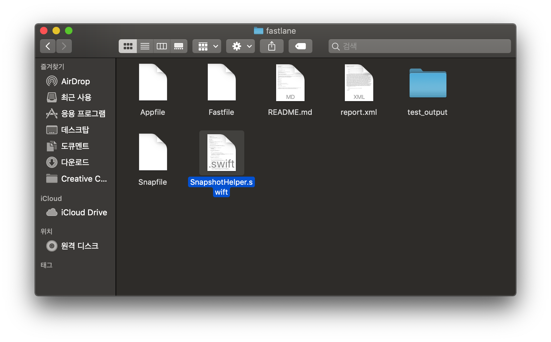 fastlane snapshot init했을 때 SnapshotHelper.swift와 함께 생성된
