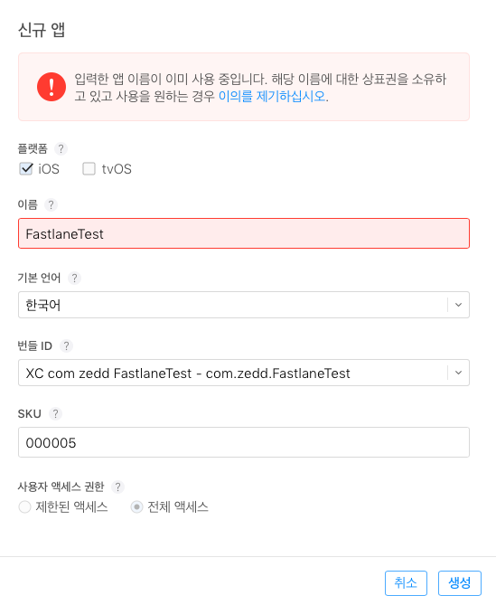 ㅇㅇ앱스토어 커넥트에 앱이 없으니까 에러남 ㅎㅎ