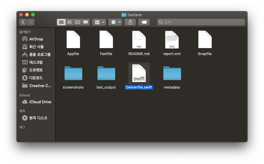 정말 Deliverfile.swift이 만들어졌군요. 그리고 옆에 메타데이터 디렉토리도...
