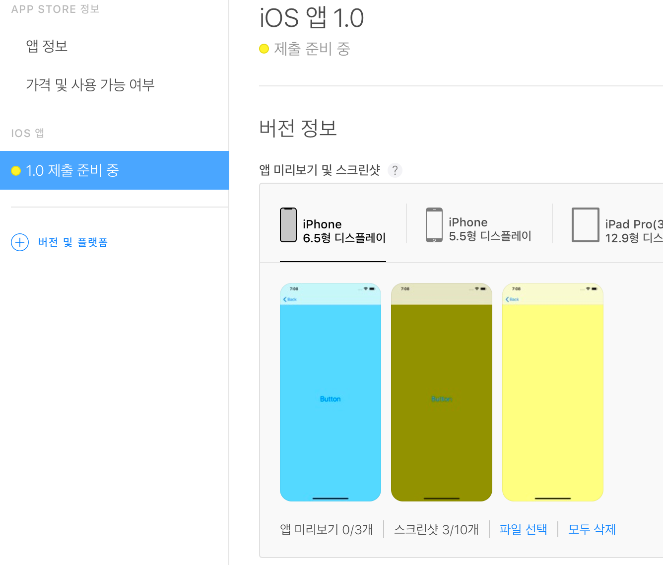 일단 저는 앱스토어 커넥트에...이 앱에 대한 버전준비를 1도 안한상태인데...일단 쳐보겠음