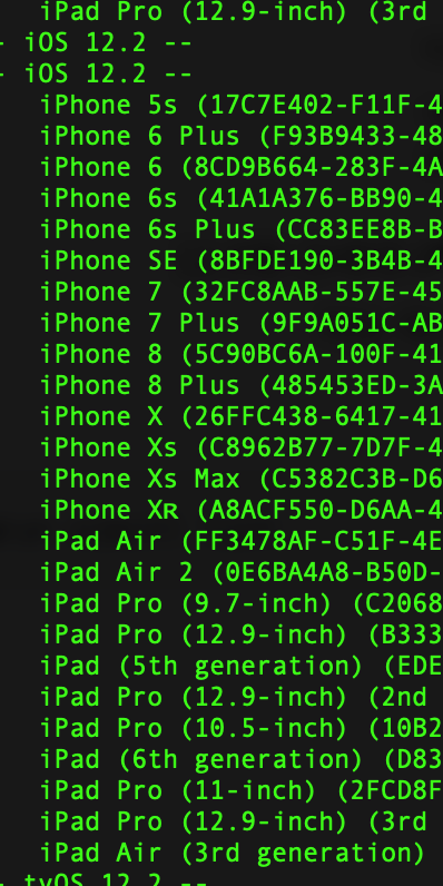 xcrun simctl list