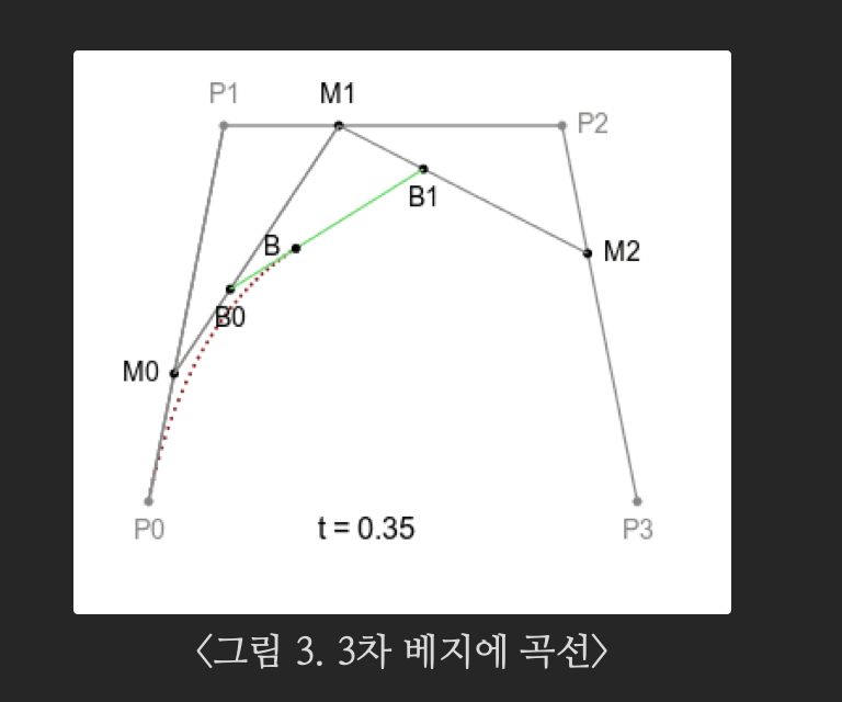 이런 블로그를 소개해드렸는데, 여기서 중간에 3차 베지어 곡선이 나오죠! 그거 같음.