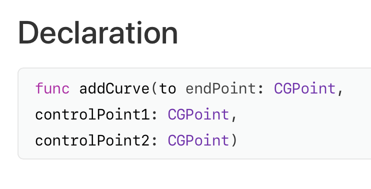 이렇게 move(to: )로 시작점을 지정해주잖아요? 그리고 endPoint가 나올거고..일단 얘네가 controlPoint로서 2개 먹기 때문에 addCurve가 controlPoint를 2개만 받는게 아닐까 하는 생각이..